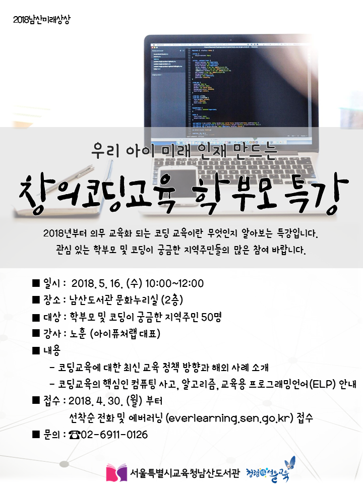 2018.04.28 │ 서울특별시교육청 서울특별시교육청남산도서관 독서문화진흥과 / 송현준 / 02-6911-0126