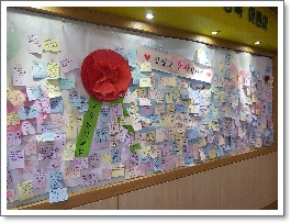 5월 14일부터 16일에는 선생님께 드리는 응원의 편지를 게시판에 적는 행사를 진행하였습니다. 중앙현관 게시판 앞에 준비된 필기구를 이용하여 학생들이 자유롭게 선생님에 대한 감사와 응원의 편지를 적었습니다. 참여하는 학생과 감사와 사랑이 가득 담긴 메시지를 읽는 선생님들 모두 행복한 모습이었습니다.
