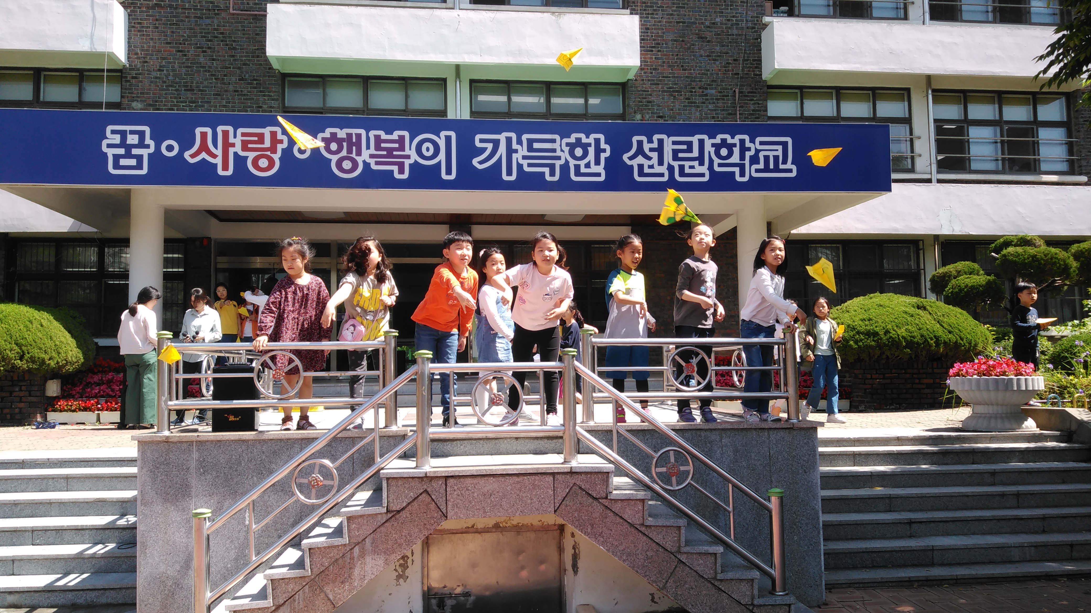 선린초등학교(교장 김명수)는 2018년 5월 23일(수)~24일(목) 본교 운동장에서 꿈 ․ 끼 탐색 주간을 맞아 전교생 꿈 날리기 행사를 실시하였습니다. 선린초 어린이들은 종이 비행기 속에 나의 꿈, 자신이 잘하는 것, 좋아하는 것, 꿈을 위해 노력할 일 등을 정성스럽게 적고, 운동장에 모여 자신의 꿈을 하늘 높이 날렸습니다.