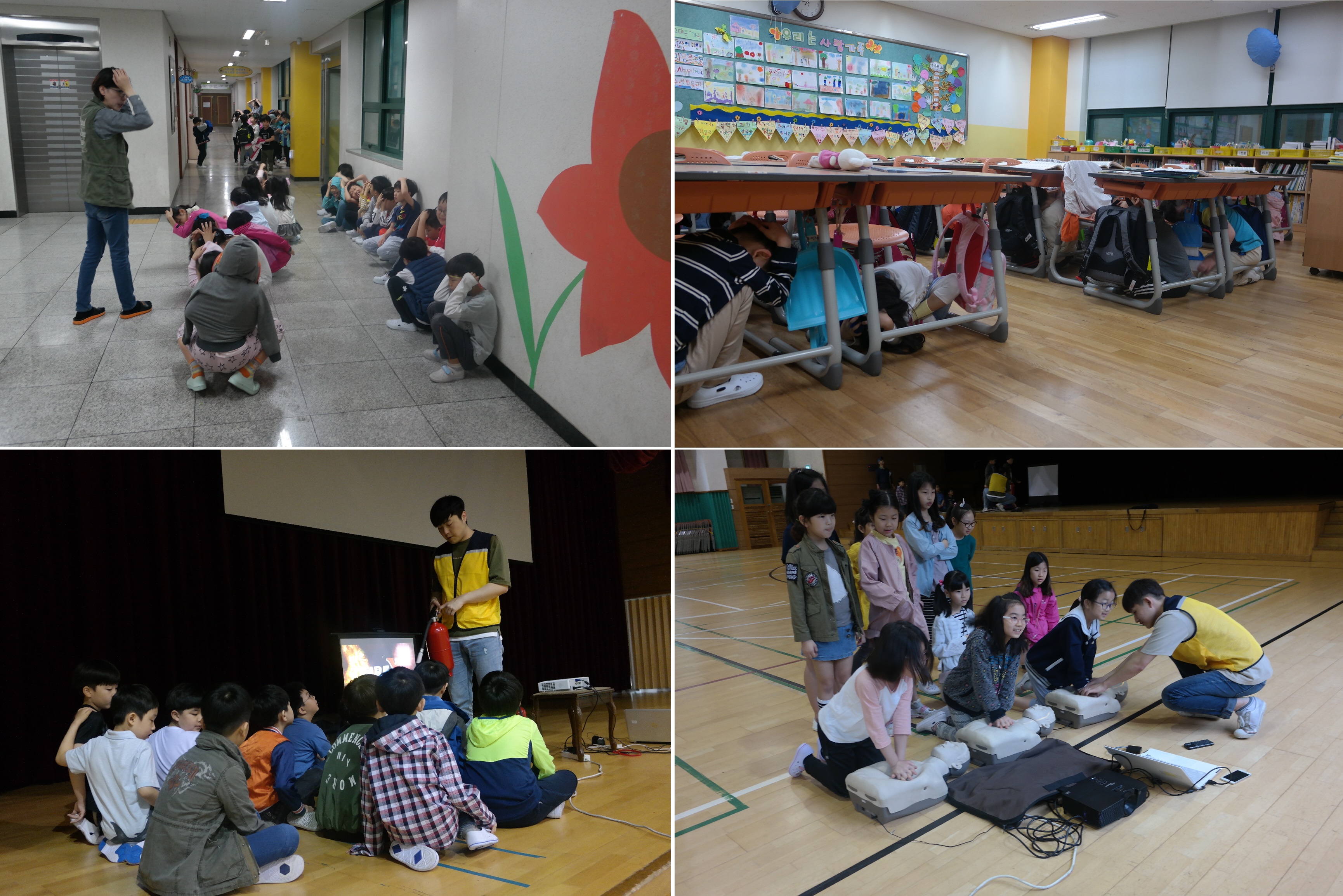 각 학급에서 자유적으로 재난 및 안전관련 동영상을 시청하고 지진 및 화재대피훈련과 안전생활을 주제로 한 글짓기, 그리기, 토론대회를 실시하였고, VR시스템을 활용한 안전교육도 진행하였습니다.