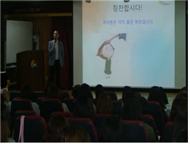 ㈜소통교육연구소와 한국창의놀이 학습협회 이사를 역임하신 김영범 강사님을 모셔서 놀이가 미래다 & 놀이는 작은 세계, 존중과 배려의 가족놀이문화로 인성UP, 창의력 UP 그리고 선행교육 근절을 통한 공교육 정상화의 내용으로 강의를 진행하였습니다. 사전신청을 토해 참가하신 약 100여명의 학부모님께서는 자녀의 양육방향과 놀이문화에 대한 많은 배움을 얻는 등 뜻깊은 시간을 가졌습니다. 나아가 우리의 자녀들이 글로벌 시대에서 잘 살아갈 수 있도록 가정에서 제대로 돕는 방법은 무엇인가에 대해서도 함께 고민해보는 자리가 되었습니다. 미래를 대비하는데 필요한 내용과 감동이 있는 특강이었다는 학부모님들의 말씀도 이어졌습니다. 앞으로도 학부모 연수를 통해 우리 학부모님들이 자녀교육과 자기계발에 큰 도움을 될 수 있도록 하고자 합니다.