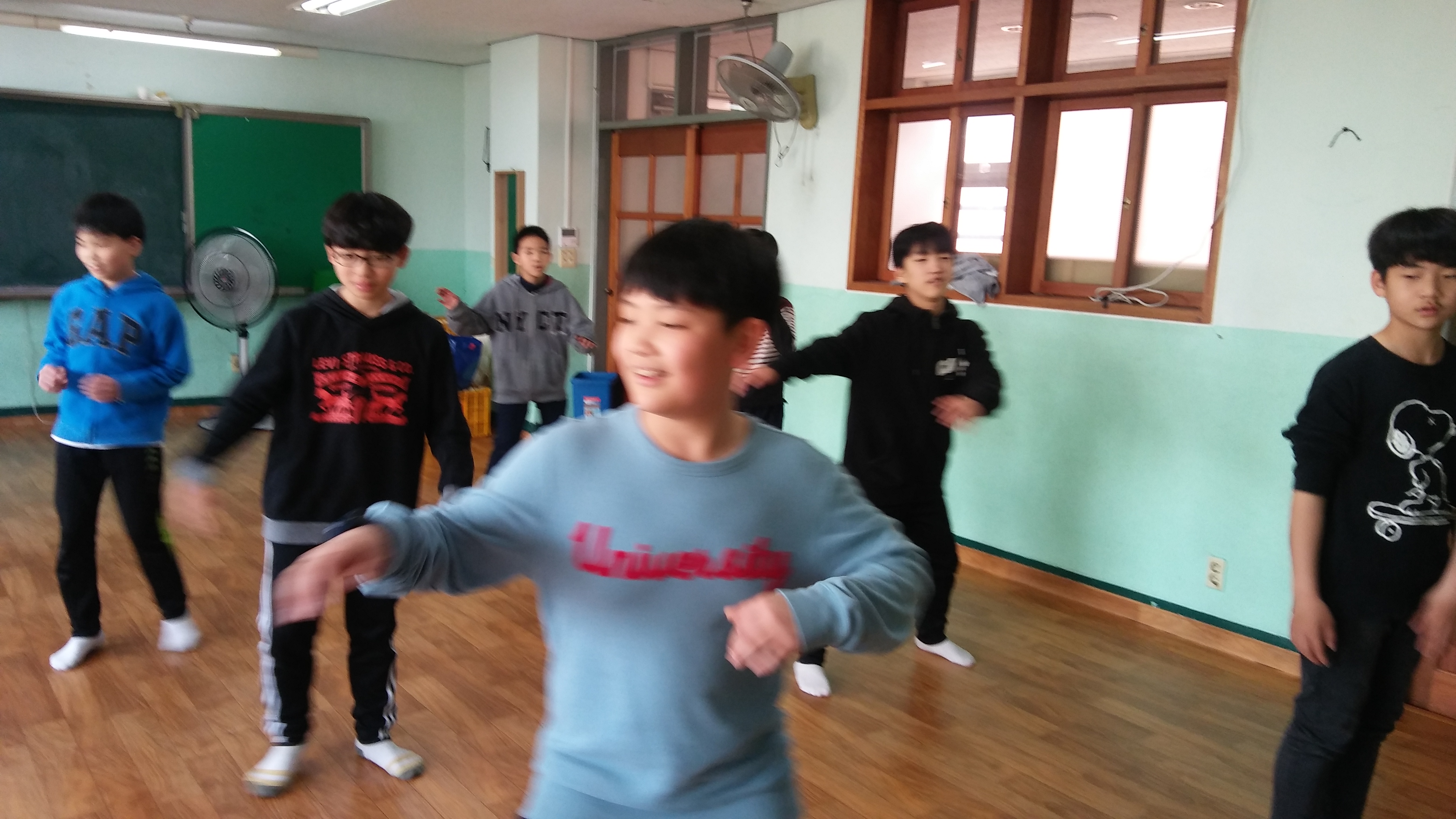서울전곡초등학교(교장 김순희) 6학년 학생들은 지난 4월부터 동대문구청에서 지원하는 문화예술교육인 무용 수업을 일주일에 한 시간씩 받고 있습니다. 라인댄스와 포크댄스를 처음으로 접해 본 학생들은 매 주마다 무용 수업을 기다릴 정도로 무용 수업에 빠져있답니다. 음악에 맞춰 리듬감 있게 움직이다 보면 일주일의 스트레스가 풀리고 하루 생활이 유쾌합니다. 앞으로도 무용을 배울 수 있는 시간이 많았으면 좋겠습니다.