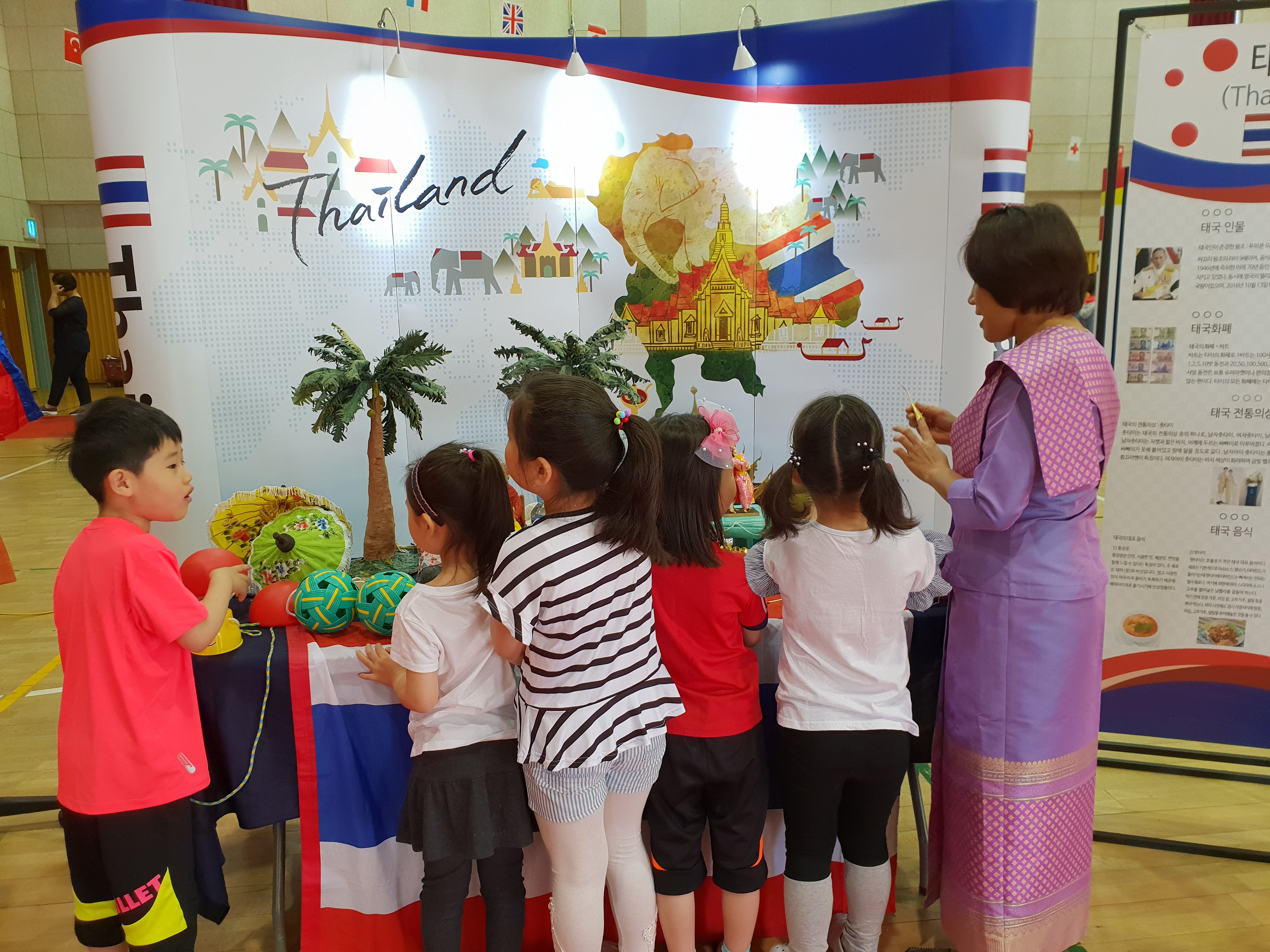 ▢ 축제에는 다섯 국가의 문화를 체험할 수 있는 부스와 포토존, 그리고 음식 코너가 마련되었습니다. 중국, 태국, 러시아, 몽골, 베트남 선생님들께서 직접 오셔서 악기, 장난감, 의상 등 각 나라의 문화를 소개해 주셨습니다.