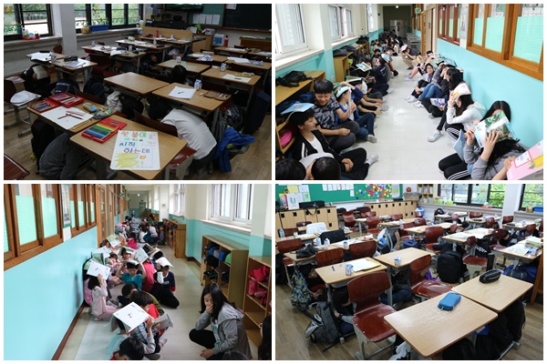 연일 지속적으로 내리는 비로 인해 실내대피 훈련으로 진행되었습니다. 교실에서 지진 및 화재 발생 시 행동요령과 우리 반 재난대피 경로를 알아보고 그리기 등 안전의식 제고를 위한 사전교육을 실시한 후, 서울시 일대에 규모 6.5의 지진이 발생했다는 지진 발생 경고 방송에 따라 학생들은 활동을 즉시 멈추고 두꺼운 책이나 방석 등으로 머리를 보호하면서 책상 아래로 대피했습니다. 이어 건물 붕괴 및 화재가 발생했다는 상황이 안내 방송으로 나오자 입과 코를 손수건으로 가리고 복도로 신속하고 안전하게 대피했습니다.