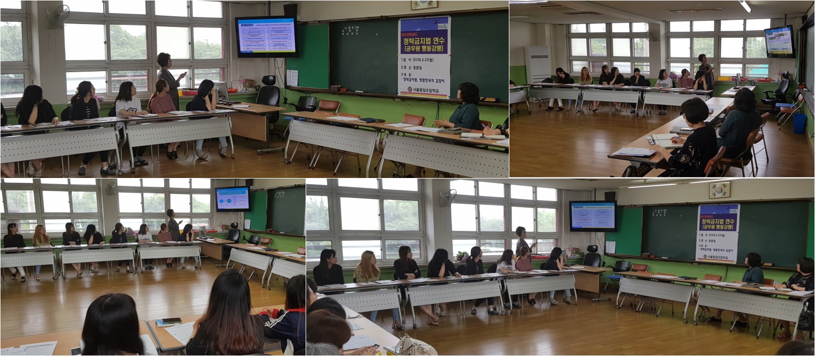 서울용답초등학교(교장 정미숙)에서는 교직원을 대상으로 5월 21일(월) 16:00~16:40 청탁금지법 및 공무원 행동강령 청렴연수를 실시하였습니다.