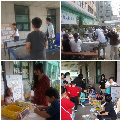 중흥 학부모회의 참여와 지원으로 꽃사랑 책사랑 체험부스(페이스 페인팅, 타투 스티커, 패치 만들기, 나비탈 만들기)를 운영하여 학생들의 많은 관심과 호기심을 일깨워주는 흥미로운 활동들을 전개하였습니다. 뿐만 아니라 통합교육 놀이터를 마련하여 어린이, 노인, 장애인, 비장애인을 넘나드는 Barrier-free 활동으로 미니 탁구, 거미손 탁구 등의 활동을 통해 장애인과 비장애인의 장벽을 허물고 서로에 대한 이해의 폭을 넓혔습니다.