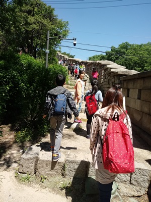 서울강서초등학교(교장 하순옥)는 5월 19일(토) 오전 9시 ~ 오후 5시까지 교육복지일반사업으로 역사탐방활동을 흥인지문에서부터 혜화동 일대를 걸으며 실시하였습니다. 교육복지 대상자 학생 9명이 참여하였으며 김은이 강사님의 해설로 제일 먼저 한양도성박물관에 도착하여 성곽에 쓰인 돌의 모양변화를 살펴보고 탑방학습지에 나온 박물관 관련 미션을 즐겁게 수행하였습니다. 낙성공원의 아름다운 성곽길을 따라 걸으며 성 안에서의 풍경과 바깥에서의 풍경을 비교하면서 혜화문으로 걸어갔습니다. 대학로에 도착하여 식문화체험을 한 후 아르코미술관에서 역사 관련 미술작품을 감상하면서 탐방학습지에 나온 마지막 미션을 수행하고 마로니에공원에서 벌어지는 음악과 연극 등 다양한 경험도 해 볼 수 있었습니다. 역사가 멀리 있는 것이 아니라 우리 서울의 이곳저곳에 살아 숨쉬고 있음을 새롭게 알아 갈 수 있었던 소중한 기회가 되었습니다.