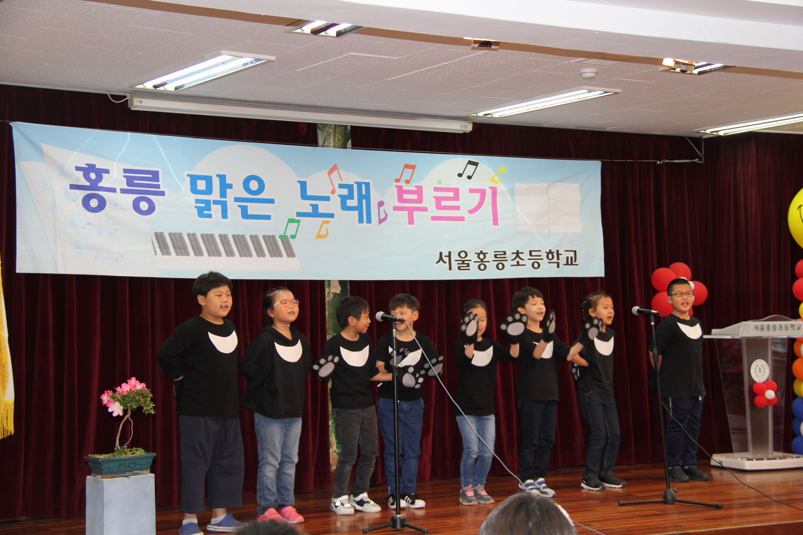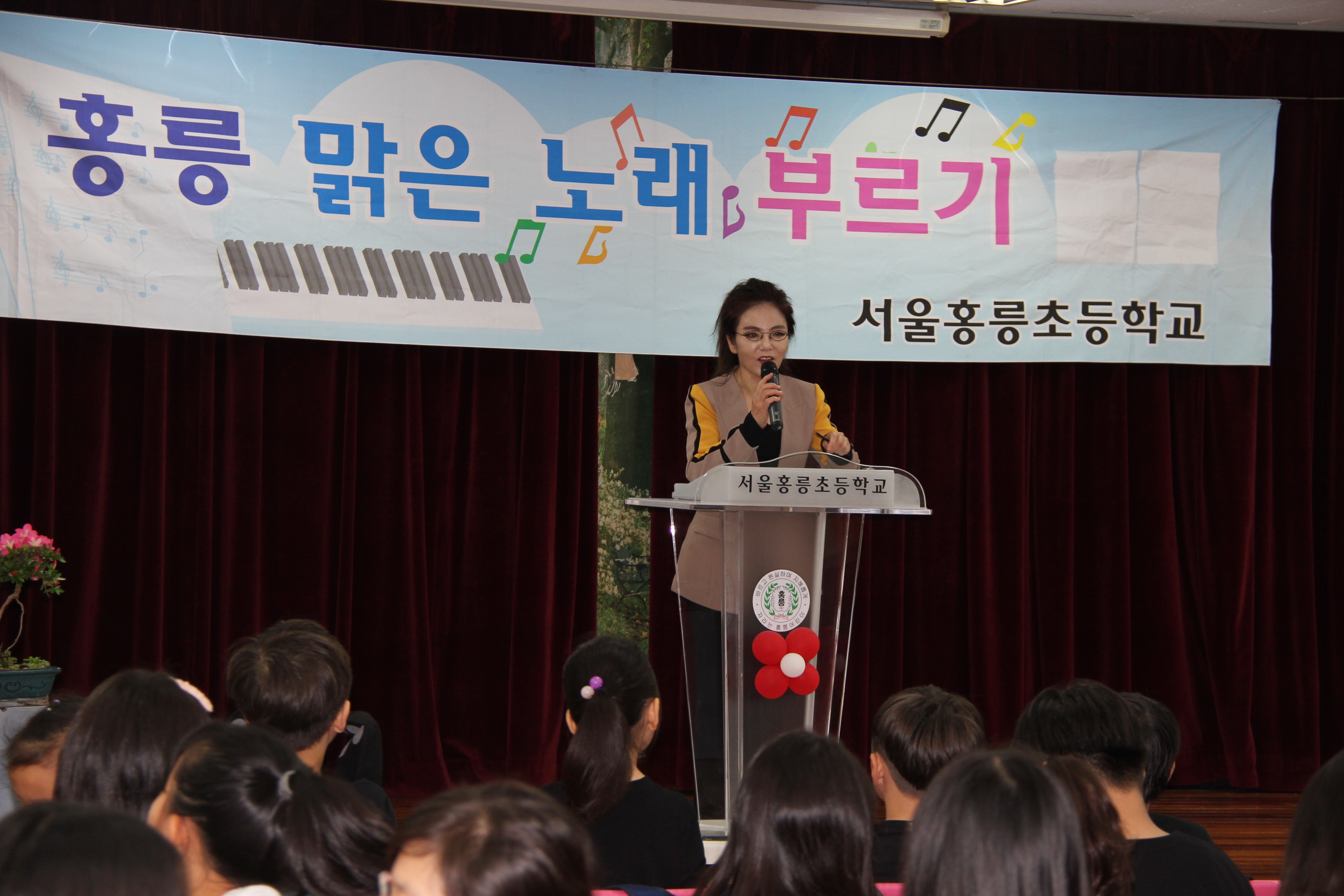 서울홍릉초등학교(교장 채정옥)는 2018년 5월 16일(수요일)에 『홍릉 밝고 맑은 노래 부르기』 행사를 실시하였습니다. 어린이들이 밝고 맑은 동요 부르기를 생활화하여 고운 심성과 풍부한 감성을 기르자는 취지로 시작된 이 행사에 올해는 치열한 학년 예선대회를 통과한 독창 8팀과 중창 3팀이 본선 무대에 오를 수 있었습니다. 행사에 참여한 학생들은 평소 노래 부르기를 즐겨하는 친구들이며, 연습하는 과정이 힘들 때도 있지만 동요의 예쁜 노랫말과 아름다운 멜로디를 부르며 연습하는 내내 행복한 시간을 보낼 수 있었다고 말했습니다. 당일에는 많은 양의 비가 내리고 천둥 번개가 치는 매우 궂은 날씨로 인해 행사에 차질이 있을까 염려했지만, 걱정과 달리 많은 부모님들이 참여하시어 따뜻한 박수로 자리를 더욱 빛내주셨습니다. 점수를 매겨 등위를 가리지는 않지만 학생들이 열심히 준비한 것을 무대에서 확인할 수 있었으며, 본 행사에 참가한 학생들 모두에게 우수상이 수여됩니다.
