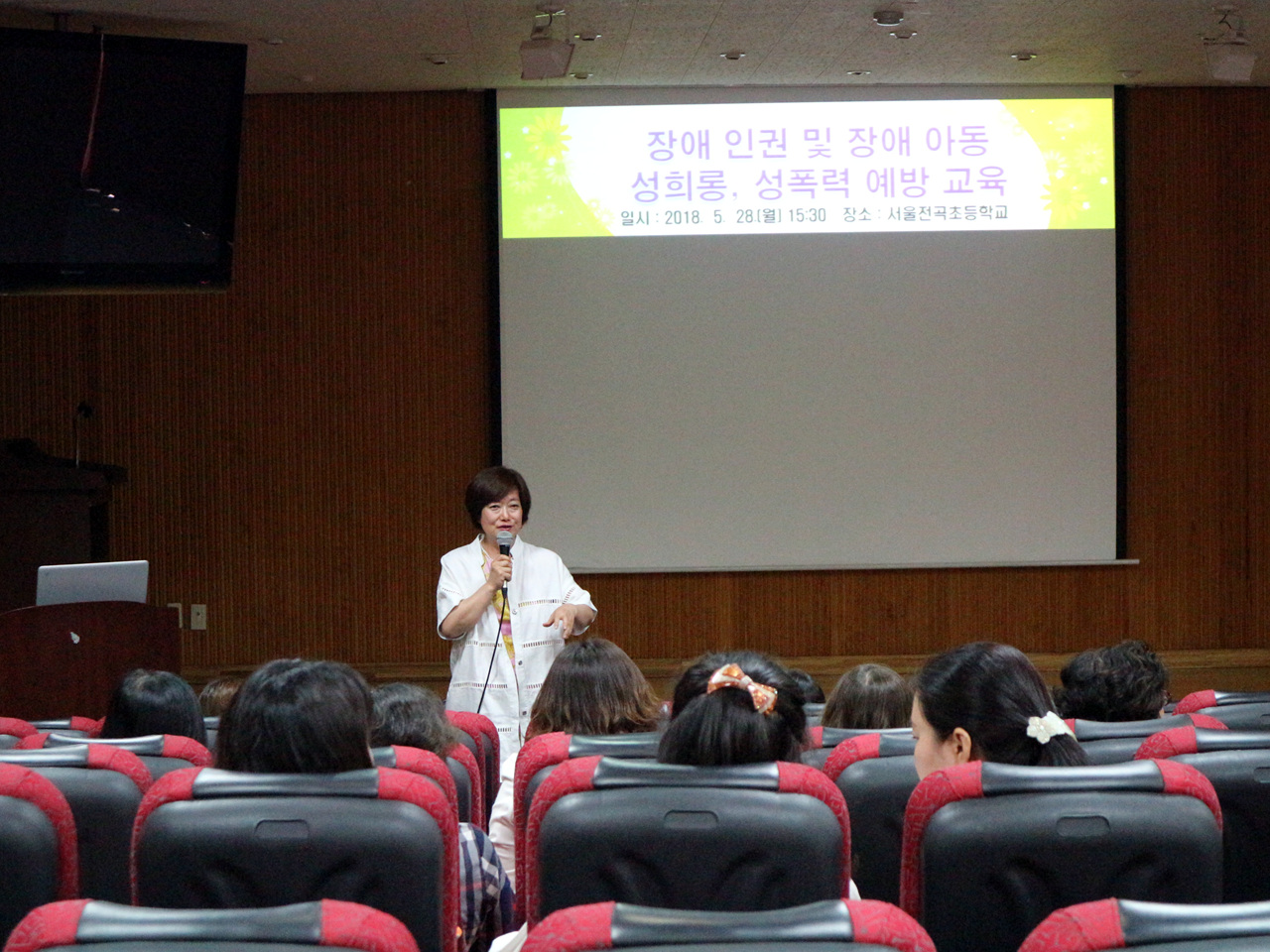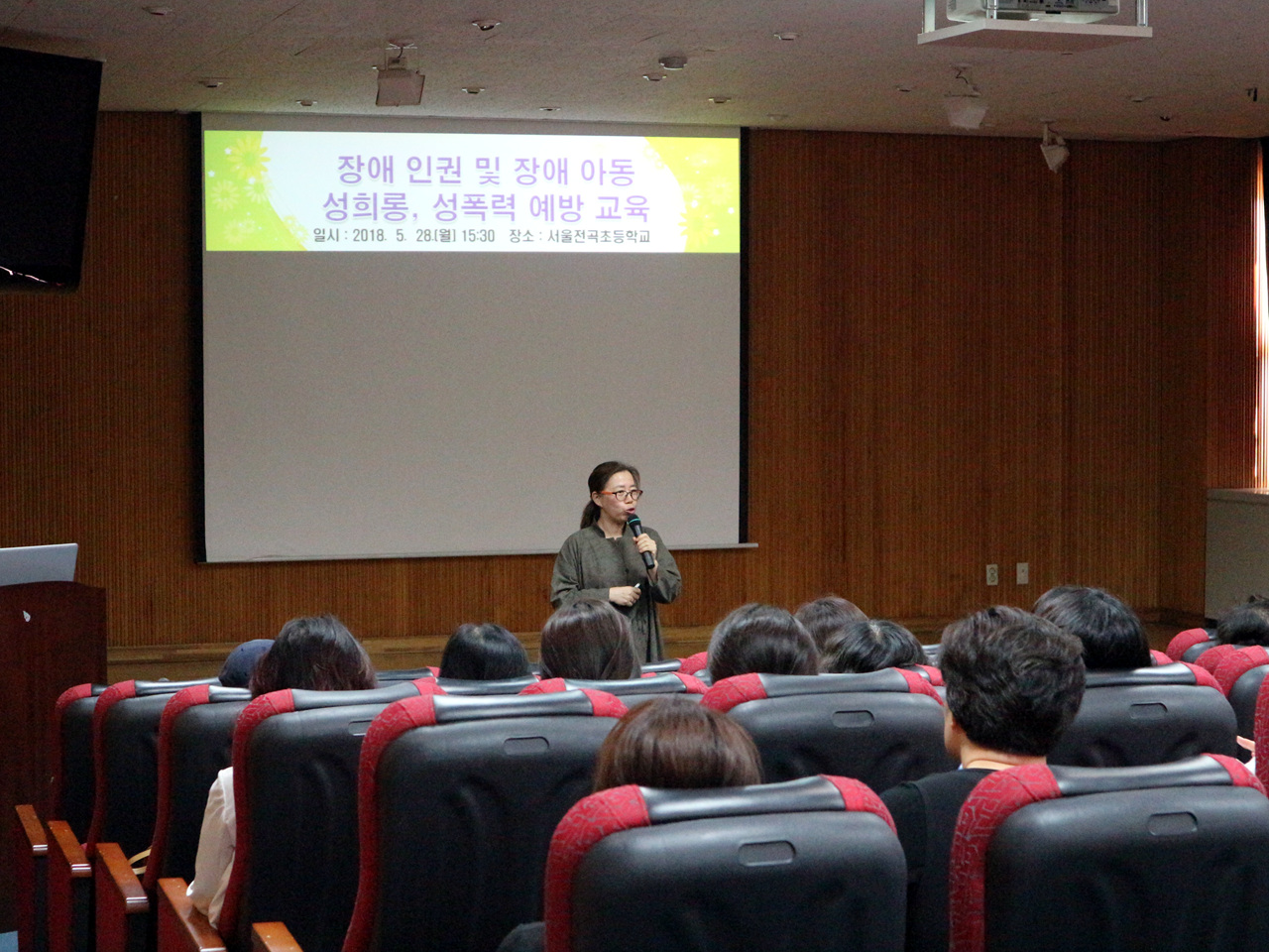 서울전곡초등학교(교장 김순희)는 교직원들의 장애인에 대한 편견을 해소하고 특수교육대상학생 인권에 대한 이해 및 책무성 강화를 목적으로 장애인권 및 장애학생 성희롱·성폭력 예방 교육 연수를 실시하였습니다.