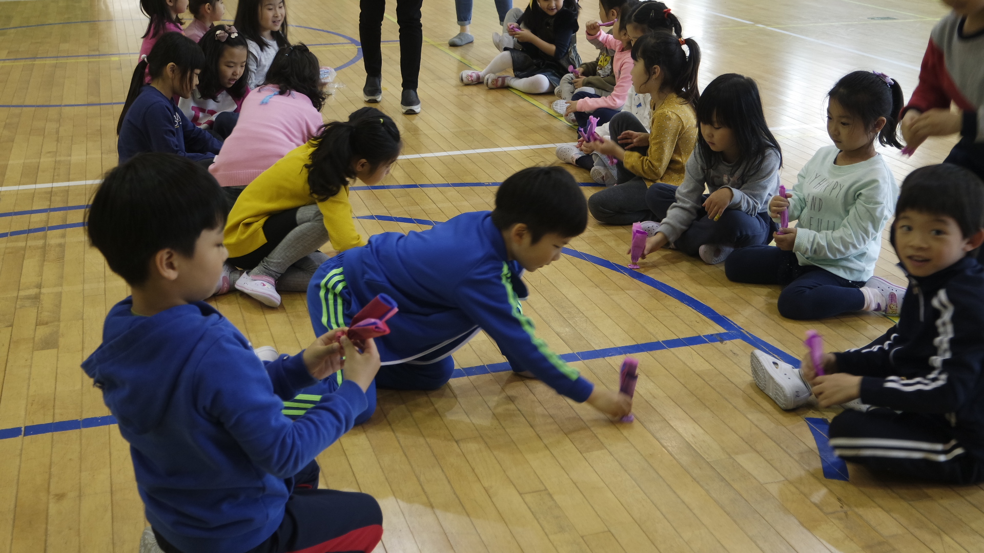 서울금천초등학교(교장 유철상)의 1학년 어린이들은 지난 3월 28일부터 금천구청의 지원을 받아 매주 수요일 3교시 전래 놀이 수업을 받고 있습니다. 첫 시간에는 ‘공수법’ 인사하기로 예절을 배웠으며, 매 시간 전래동요 ‘방아야 방아야’ 노래에 맞추어 몸을 풀고 다양한 전래놀이를 배우고 있습니다. ‘우리 집 옆 집 도둑괭이’ 노래에 맞추어 율동도 해보고 까막잡기(눈가리고 잡기)도 해 보았습니다. 보자기, 끈, 손수건, 엽전, 콩주머니, 단추 등 생활속 재료를 활용해 놀이하는 방법을 배우고 제기, 딱지 등도 직접 만들어 보며 전래 놀이를 체험할 수 있는 소중한 경험을 만들어가고 있습니다.