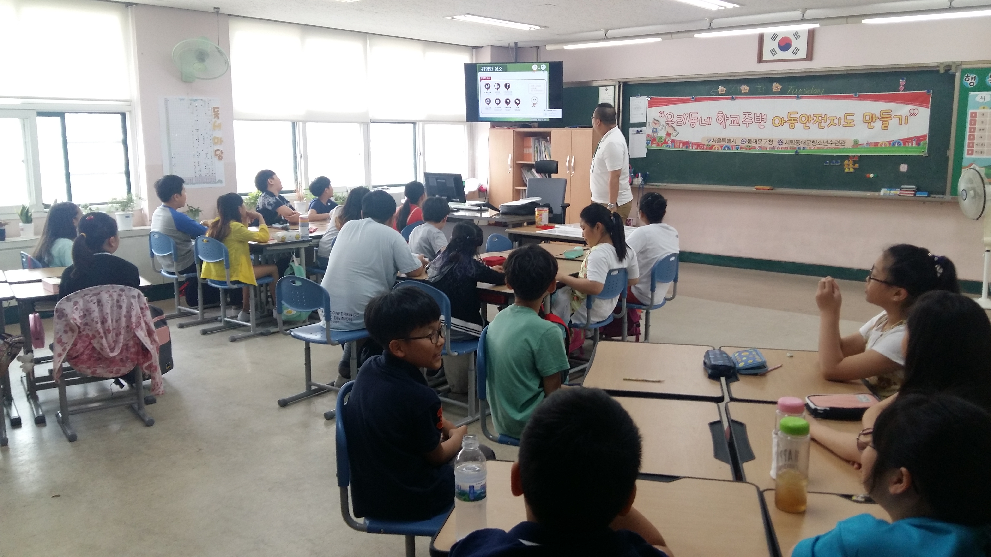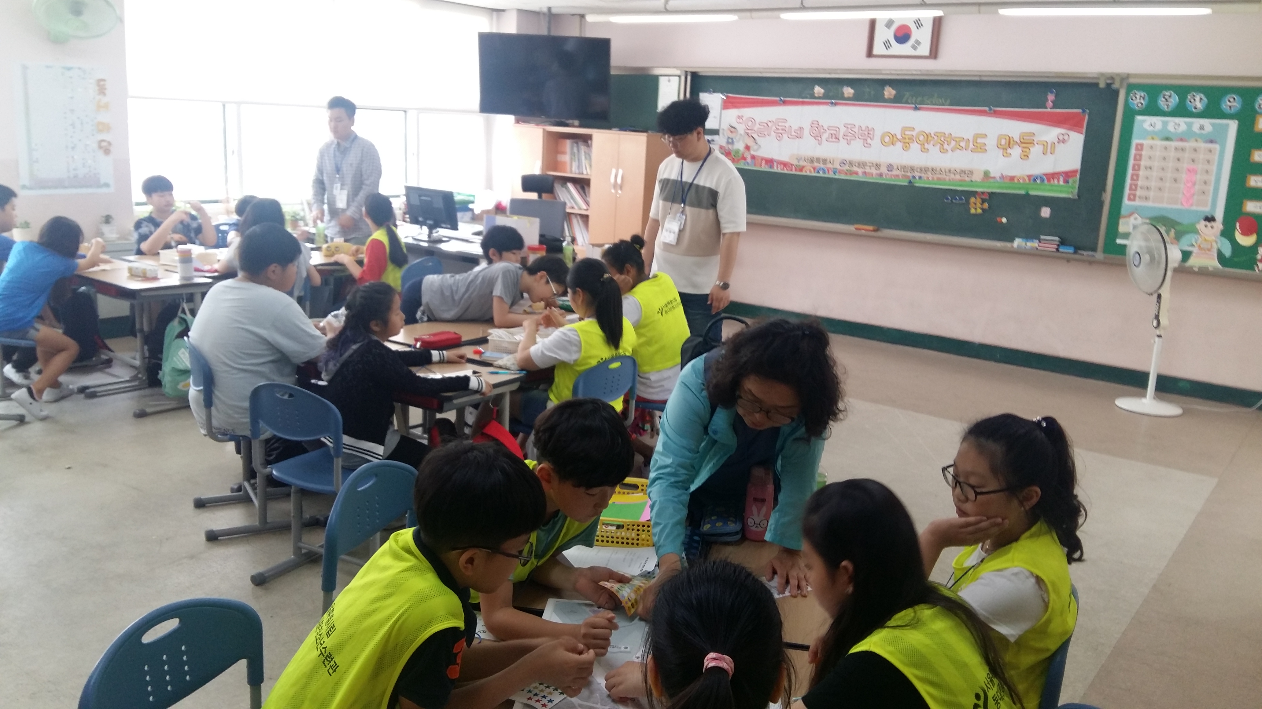 서울전곡초등학교(교장 김순희) 4학년 1반 23명은 5월 29일(화) 서울시립동대문청소년수련관에서 오신 선생님들과 9시~12시까지 아동의 안전을 위한 지도제작 활동을 실시하였습니다. 먼저, 참여아동들은 범죄 및 성폭력 예방교육을 받은 후 6인 1조로 지도를 제작하는 방법에 대해 공부하였습니다. 그 후 직접 현장조사를 위하여 교문 밖으로 나가서 등·하교길에 위치한 지킴이집, 안전지대, 유해시설, 위험 지역 등을 지도에 표시하고 지역주민들과 이전에 발생한 사고에 대해 인터뷰도 실시하여, 우리 동네 주변에서 어떤 일이 있었는지 알게 되었다. 학교로 돌아와서는 조사한 내용에 대해 서로 의견을 나누며 찍었던 사진도 출력하여 안전지도를 완성하였습니다. 마지막으로 학생들은 직접 조사한 우리지역의 특징과 새롭게 알게 된 점을 조별로 발표하며 마을과 함께하는 안전한 학생생활을 직접 체험하는 유익한 시간을 가졌습니다.