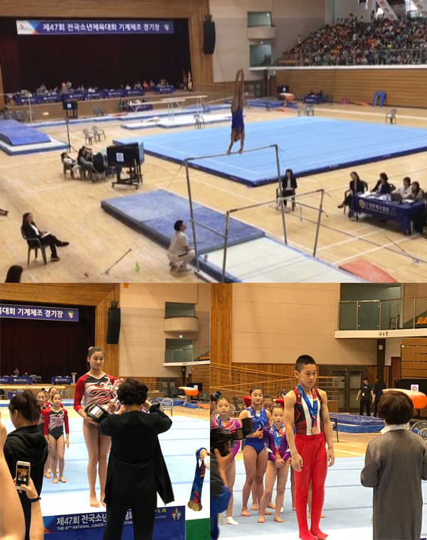 서울대동초등학교(교장 최영남) 체조부는 5월 26일(토)부터 28일(월)까지 충청북도 충주에서 개최된 2018 전국소년체육대회에서 우수한 성적을 거두었습니다. 6학년 노현우 학생은 철봉 금메달, 마루 은메달, 평행봉 동메달, 개인종합 동메달을 획득하였고, 6학년 이서정 학생은 이단평행봉 금메달, 개인 종합 동메달을 획득하며 다양한 종목을 석권하였습니다. 단체 종목 역시 남자는 노현우, 김은기 학생이 포함된 서울대표 팀이 은메달을 목에 걸었고, 여자는 이서정 학생이 포함된 서울대표 팀이 전국 1위의 기록으로 금메달을 획득하였습니다. 평소 힘든 훈련을 이겨내고 꾸준히 실력을 쌓아 전국 대회에서도 영광스러운 결과를 기록한 대동의 체조 꿈나무들에게 힘찬 격려의 박수를 보냅니다.