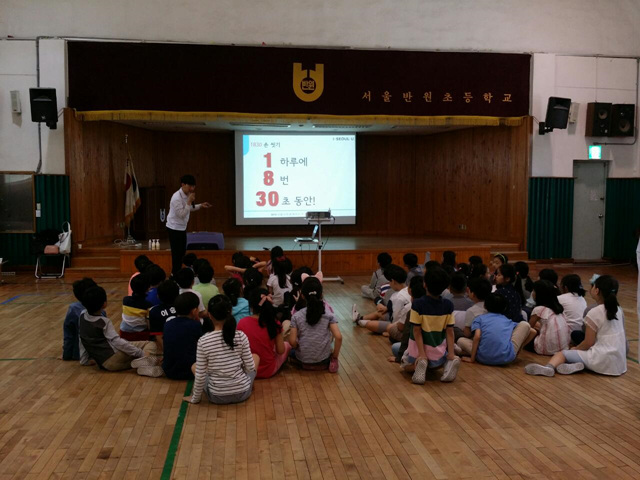이 날 학생들은 손 씻기의 필요성과 손 씻는 방법에 대하여 알아보고, 손 씻기 체험기기(뷰 박스)를 이용하여 씻지 않은 손과 씻은 손을 비교하여 보았습니다. 이번 체험을 통해 학생들은 손 씻기의 중요성과 손 씻기 습관을 기르는 계기가 될 것으로 기대해 봅니다.