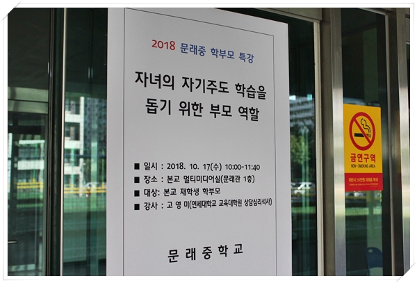 문래중학교(교장 김정희, 교감 김정연)는 10월 17일, 오전 11시부터 문래관 멀티미디어실에서 학부모 연수를 실시하였습니다.
