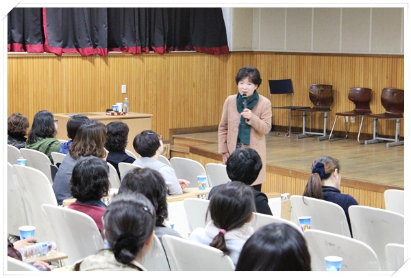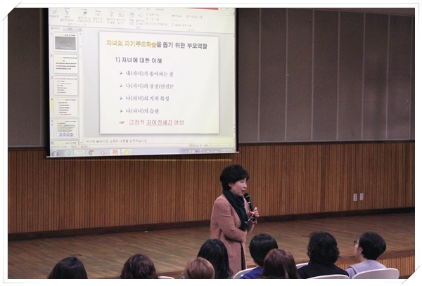 고영미(연세대 교육대학원 상담심리석사) 강사님을 모시고 "자녀의 자기주도 학습을 돕기 위한 부모 역할"이란 주제를 가지고 특강이 진행되었습니다.