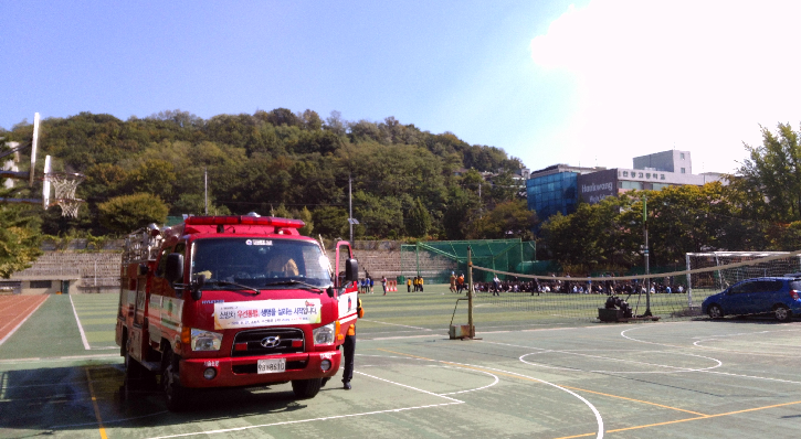 본 훈련에서는 소화기 및 소화전을 이용한 화재진압 방법과 실제 교내에서 화재가 발생하였을 때의 신속한 대처방법 등에 대해서 학생들을 대상으로강서소방서소방대원의 강연으로 실시되었다. 또 이어서 실제 화재 상황을 가정하여 불을 지핀 후 소방차를 이용해 화재를 진압하고, 실제 학생들이 소화전과 소화기를 이용하여 화재를 진압하는 모습 등의 퍼포먼스를 보였다. 이를 통해 일상생활에서 화재의 위험성을 쉽게 잊는 학생들 및 선생님들에게 화재의 위험성에 대한 경각심을 다시금 일깨워 주었다. 본 훈련을 받은 2학년 1반 전00 학생은 “뉴스에서만 보고 평소에는 소방차가 물을 분사하는 걸 못 봤었는데 실제로 보니까 생각보다 물도 엄청 멀리 나가고 세기도 엄청 세보였다. 그리고 언제나 불이 났을 때 도와주시는 소방관 분들을 실제로 뵈니 너무 멋있었다.”라는 등의 긍정적인 의견을 보였다.