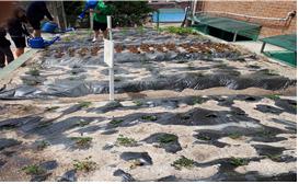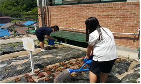 유익한 미생물의 번식을 위해 쌀뜨물로 EM발효액을 만들었습니다. 친환경퇴비와 농약에 관한 교육도 받았습니다. 비닐