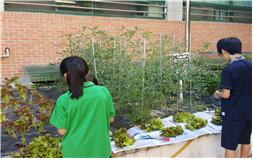 잡초를 제거하고 웃자람을 막기 위해 간간히 솎아주면서 텃밭사랑반 학생들은 나날이 성장하는 작물 관찰의 즐거움을
