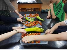 여름방학을 맞이하여 방울토마토 수확파티를 열고 싱싱하고 담백한 채소의 참맛을 맛보았습니다. 선생님들께도 아주 조금