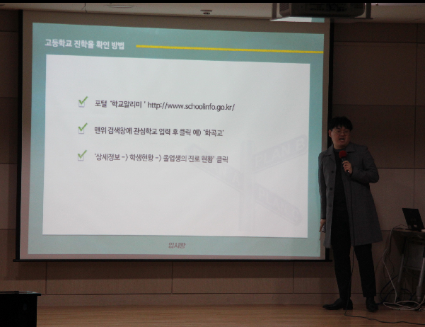 이번 강연은 학생의 특성에 맞는 고등학교 선택 요령과, 고등학교 종류 별 대입 방법에 대한 내용이 주를 이루었다. 또한 고등학교에 대한 정보를 얻을 수 있는 유용한 사이트를 알려 주는 등 고등학교 선택에 있어 중요한 팁들을 많이 얻을 수 있는 유익한 강연이었다.