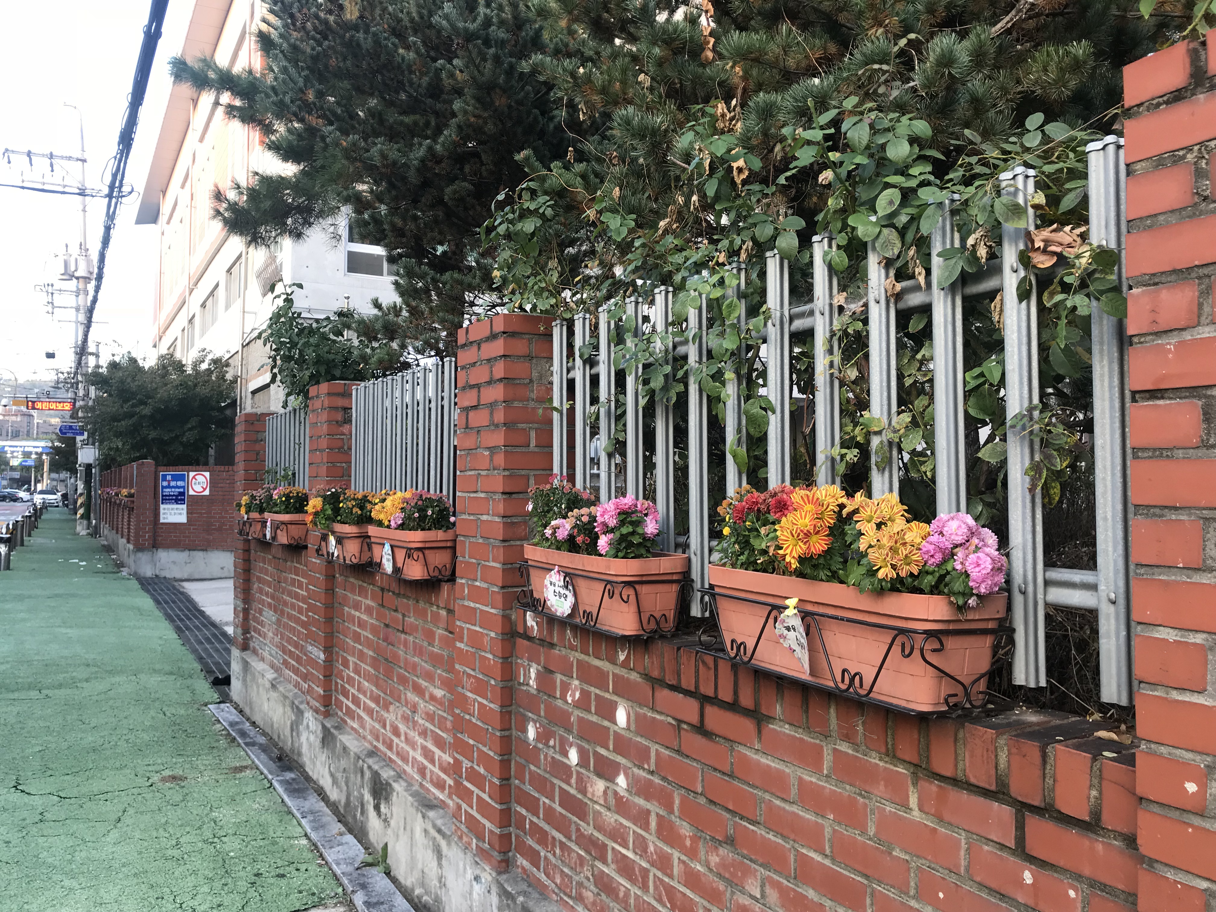 등하굣길에 만날 수 있는 국화들과 인증샷을 찍어서 카톡으로 보내면
