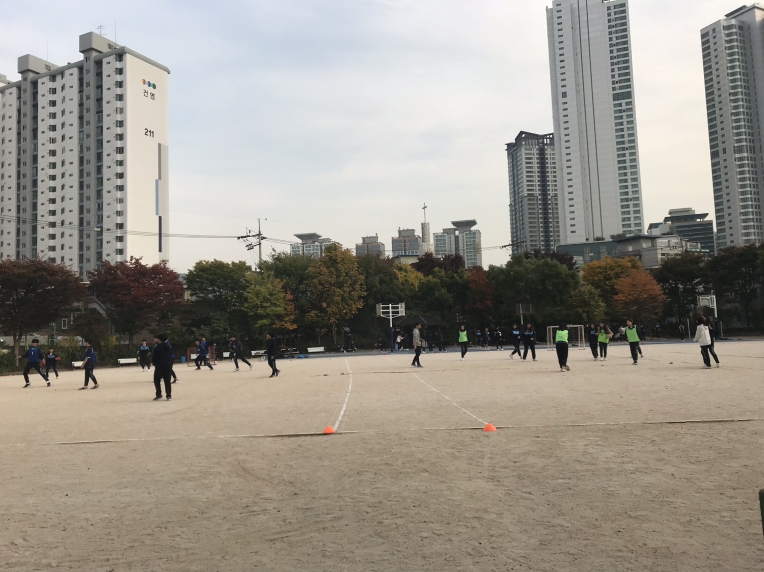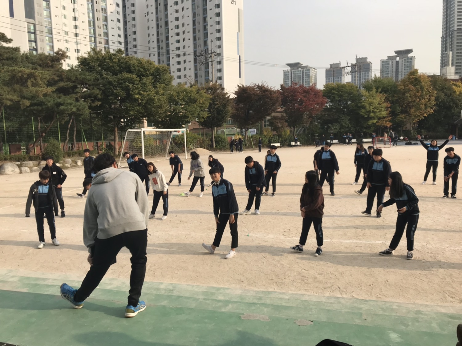 □ 10월 22일(월)에 2학년 체육과 조성훈 선생님은 미니 축구게임을 중심으로 제안수업을 실시하였다. 수업은 제 1경기는 성별을 나누어 진행되었고, 제 2경기는 성별을 혼합하여 진행되었다. 체육교과의 특성 상 운동장에서 학생들이 다 같이 함께 어울려 협동하고 배려하는 활동이었다. 제안 수업에 이어 열린 평가회에서 평소 수업에 집중하지 않았던 학생들도 체육수업에는 적극적으로 참여하는 모습을 보여 학생의 새로운 면을 알게 된 계기가 되었다는 의견, 체육교과의 특성을 잘 살려 2학년 제안수업의 주제인 배려를 수업활동에 적용하기 수월했다. 등 다양한 면모에 대한 의견을 나누었다.