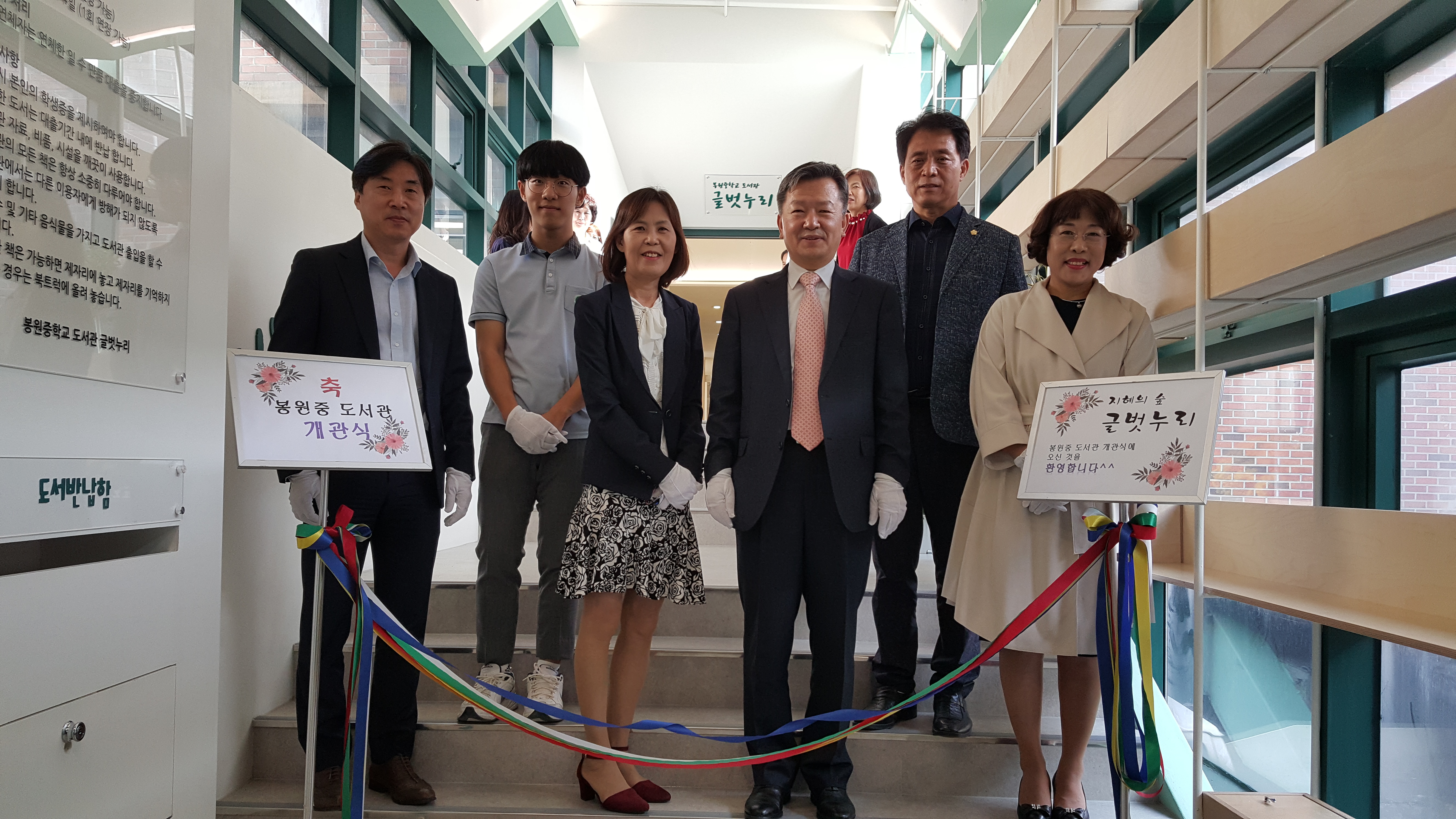 봉원중학교(교장 이정란)에서는 2018년 10월 8(월)일 도서관 ‘글벗누리’ 개관식이 열렸습니다. 이를 축하하기 위해 동작관악교육지원청 민병관 교육장님을 비롯한 많은 내빈과 봉원교육가족이 참석한 가운데 지난 2개월에 걸친 리모델링 결실의 기쁨을 나누었습니다. 2018년 8월 시작된 도서관 리모델링은 ‘지혜의 숲을 거닐다’라는 컨셉 아래 학생들이 도서관에 들어서는 순간 숲속에 들어온 느낌을 주기 위해 도서관 곳곳에 정성을 쏟았습니다.
