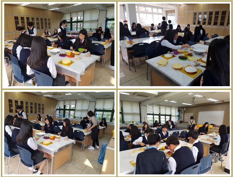 학생들은 직접 생크림을 만들어 케이크 빵을 꾸미고, 여러 가지 과일을 이용하여 자신만의 개성 있는 케이크를 만들며 성실하게 체험에 임하였다. 곧 완성 될 케이크에 대한 설레임으로 학생들의 얼굴엔 미소가 번졌고, 본인의 케이크를 직접 장식하고 만든 것에 대한 뿌듯함과 성취감을 느낄 수 있었다.
