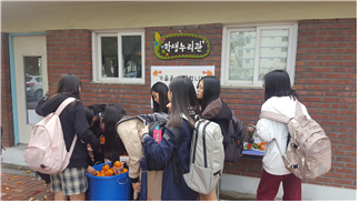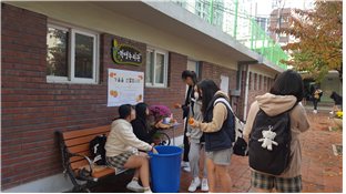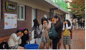 ▢ 지난 1년 동안 학생들의 웃음 거름을 받아 무럭무럭 자라 온 감나무가 어느덧 열매를 맺고 곳곳에 알록달록 단풍과 함께 풍성한 결실의 계절이 왔음을 알리고 있다. 이에 학생회는 하굣길 친구들에게 수확한 감을 나눠주는 행사를 진행하기로 하였다. 한 해 동안 무럭무럭 자란 학생들을 꼭 닮은 감과 가을 단풍을 닮은 예쁜 웃음꽃을 피우는 학생들의 모습이 어우러져 하굣길 서울여중을 물들였다.
