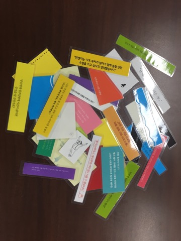 '좋은 구절 쓰기'는 책 속에서 인상깊던 구절을 친구들에게 소개하는 행사였다. 가을을 느낄 수 있는 단풍잎메모지에 틀이나 제한없이 문구를 작성하는 활동으로 많은 학생들이 참여하였다. 소설 속 유명한 대사, 에세이집에서 발견한 위로의 말, 그림책 속 마음을 따뜻하게 만들어주는 글 등, 모두들 그동안 읽었던 책 속에서 소개하고싶은 문구를 선별하고 또 선별하여 신중히 소개하였다.