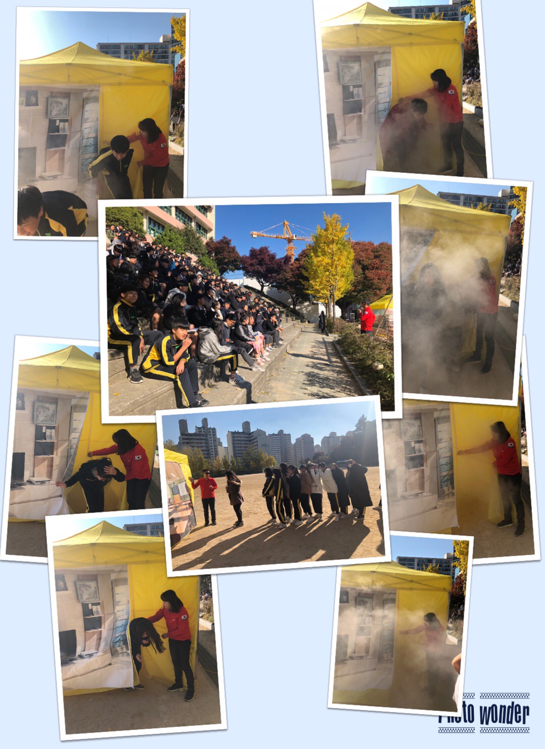 학생들은 교육 받은 대로 교사의 인솔과 안전 멘트에 따라 정해진 대피로로 질서있게 이동하였다. 스텐드에 집결한 학생들은 학년 별로 안전 교육을 받고 전교생과 교사들이 함께 화재 미로 체험을 했다. 미로 체험을 통해 실제 상황을 인지할 수 있었고, 실제 화재 상황에서 어떻게 대피해야 하는 지 체계적으로 계획을 숙지할 수 있는 시간이었다.