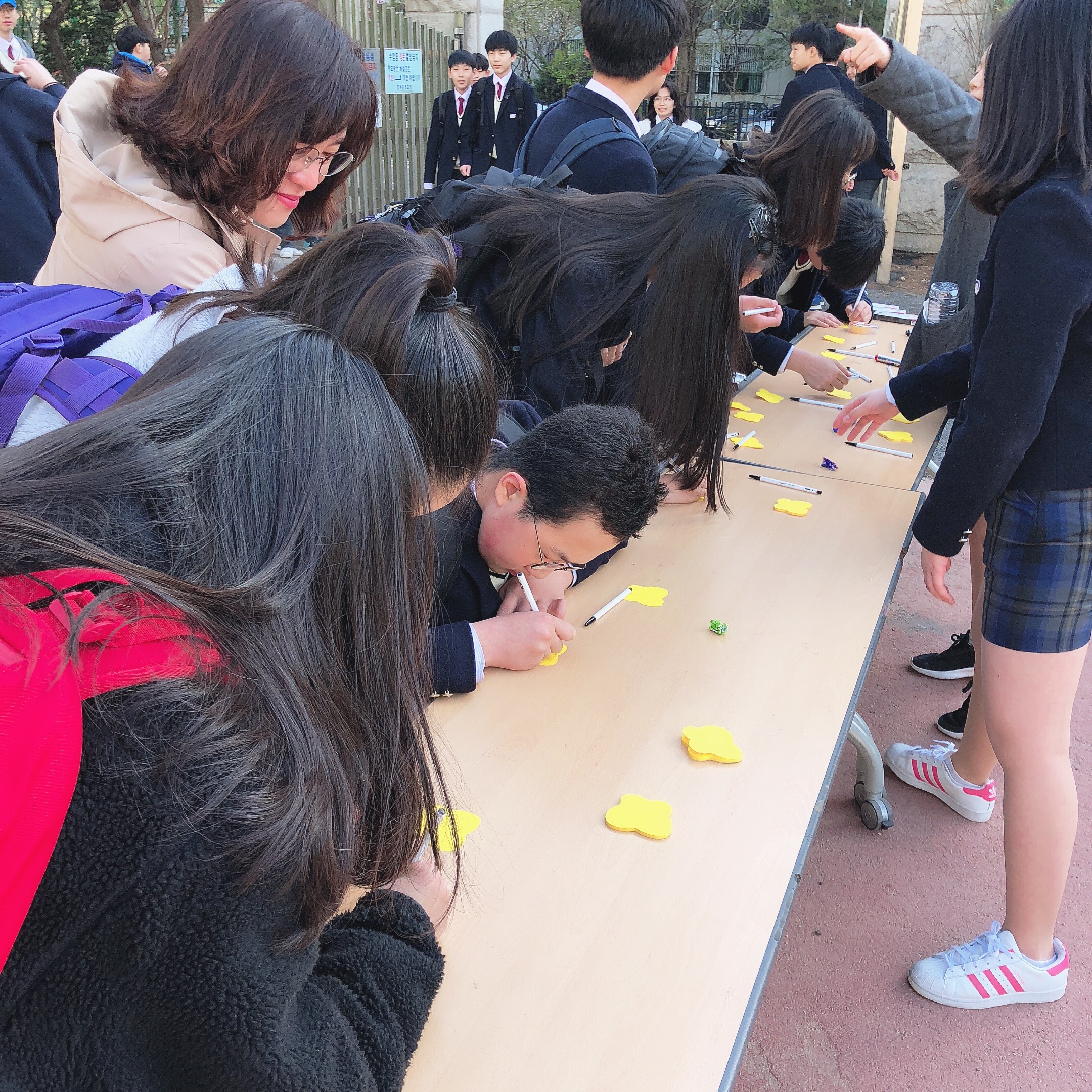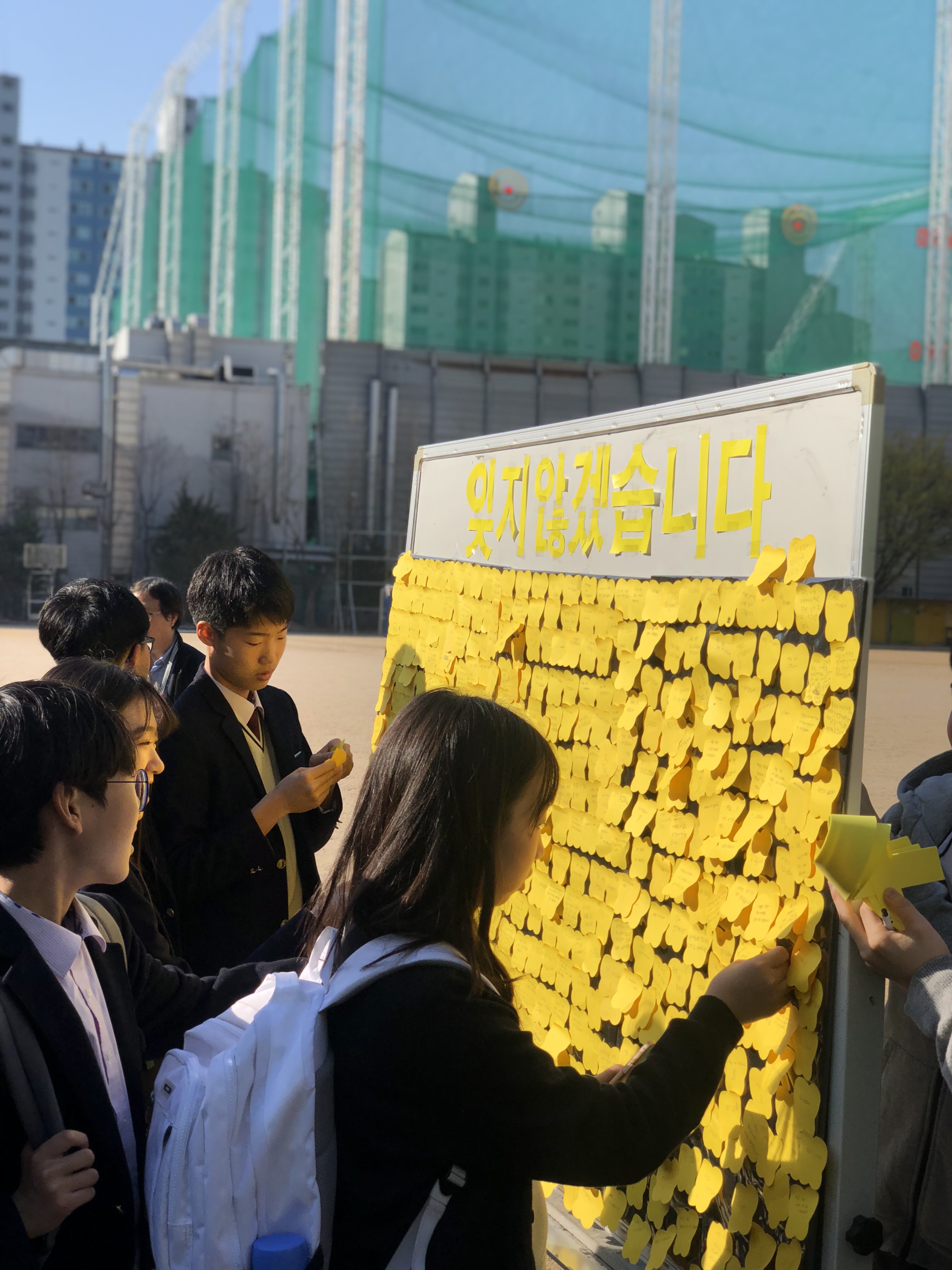 학생들은 추모의 메시지를 쓰고 다른 학생이 쓴 글을 읽으며 당시 희생된 노란 리본의 별들을 기리는 시간이 되었다.