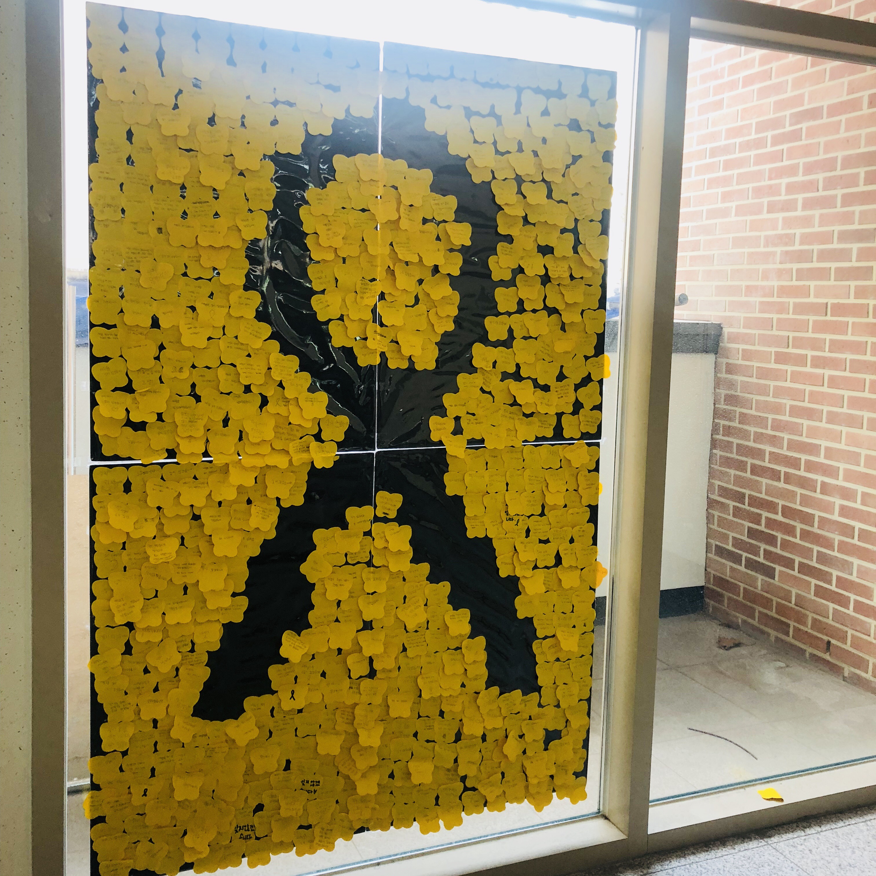 노란나비모양 포스트잇에 ‘잊지 않겠다.’, ‘다시는 이런 참사가 일어나지 않기를 바란다.’는 마음과 함께 유가족에게 위로를 전하는 메시지를 적고 붙이고 애도의 마음을 함께 나누었다.