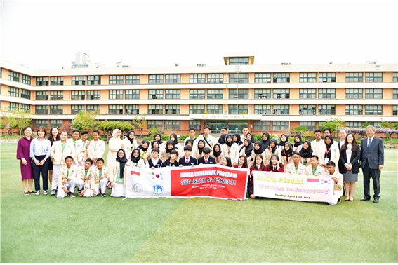 2019년 4월 23일 화요일, 인도네시아 자카르타 동쪽에 위치한 Alsum Middle School(Al Azhar 31 Summarecon) 교육방문단이 장평중학교(교장 김규상)를 찾았다. 학생 38명, 교사 3명과 스태프 등 총 45명이 방문하여 장평중학교에 대해 소개를 받고 기념품 교환, 수업 참관, 양국의 전통 노래 및 춤 공연, 점심 식사을 하면서 즐거운 시간을 가졌다.