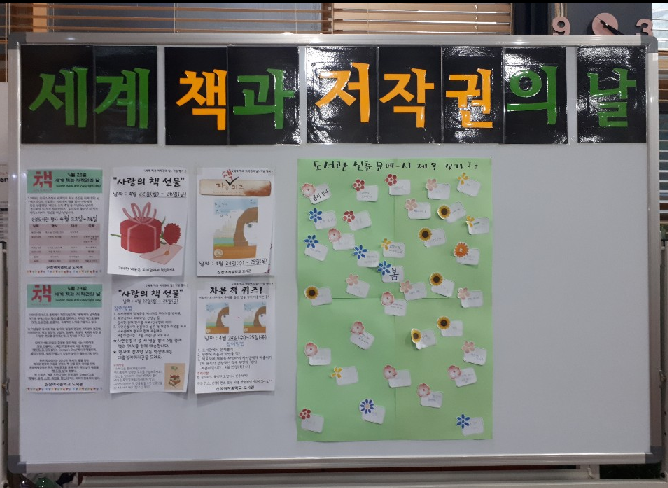 ‘세계 책과 저작권의 날’은 1995년 유네스코에서 세계인의 독서 증진을 위해 정한 날이다. 이런 유래와 같이 학생들이 도서관에 많이 오고, 책을 가깝게 생각했으면 좋겠다는 목적을 담은 이번 행사는 흥미를 끌 만한 재미있는 프로그램들로 구성되었다. 특히, 올해에는 ‘도서관 신춘문예’, ‘사랑의 책 선물’, ‘자음 책 퀴즈’ 등의 행사가 진행 중이다.