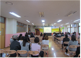 <학부모연수 개회식 모습> <학부모연수 중 교장선생님 말씀>
