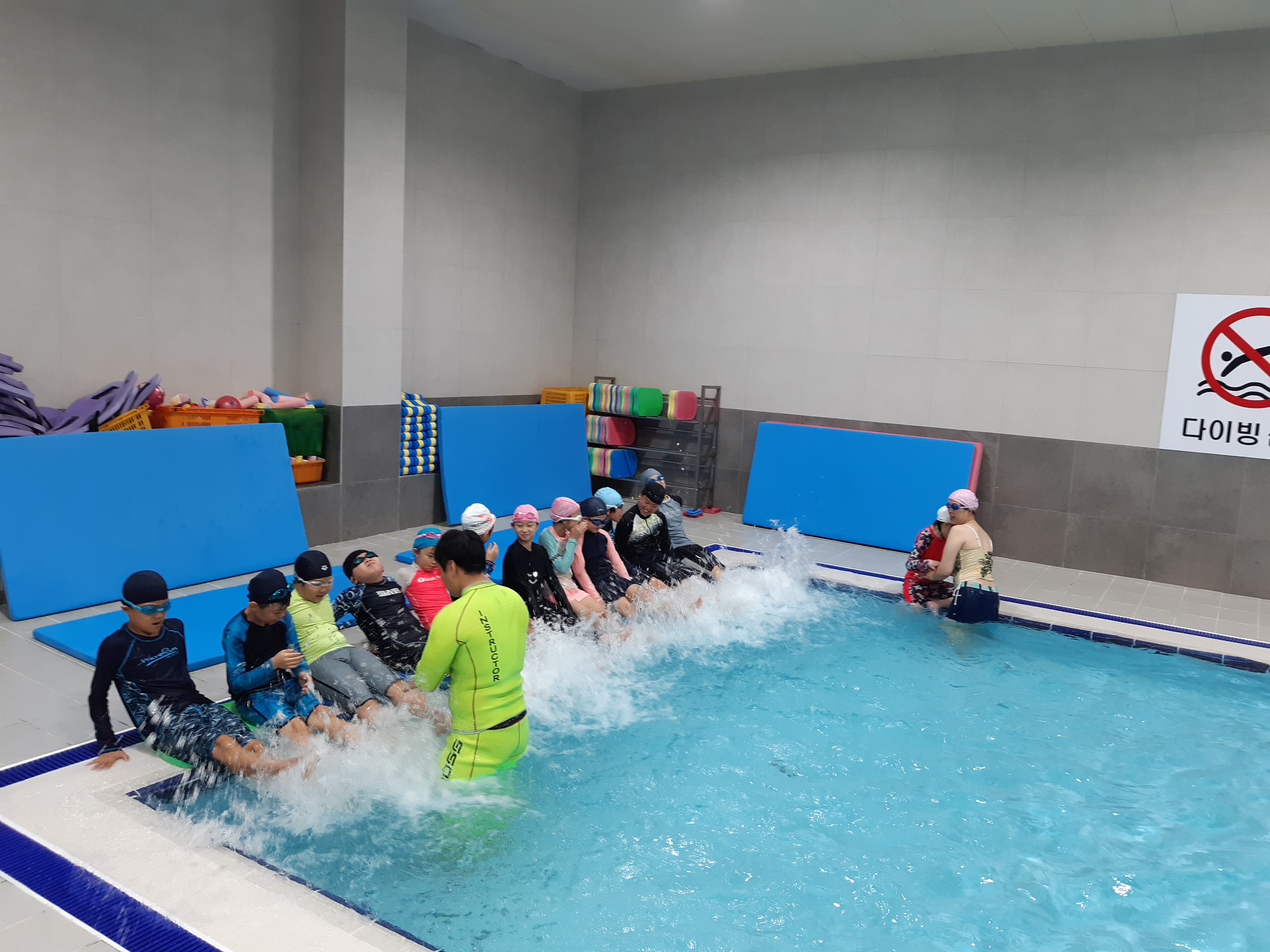 서울길동초등학교(교장 박찬미) 4학년 어린이들은 11월 1일부터 12월 6일까지 고덕사회체육센터 수영장에서 수영교육을 받고 있습니다. 4학년 학생들은 수영장에서 먼저 안전교육과 준비운동을 한 후 선생님의 간단한 테스트로 평형과 자유형을 할 수 있는 중급반 그룹과 아직 수영을 혼자하기 어려워하는 초급반 그룹으로 나누어서 수업을 받았습니다. 중급반 학생들은 깊은 수영장에서 킥판을 들고 발차기를 하면서 줄지어 구간을 도는 연습을 하였고, 초급반 학생들은 유아풀장에서 발차기 연습부터 시작하며 물에서 이동하는 기초훈련을 받았습니다. 우리 길동초 친구들은 2주에 걸쳐 총 6회 수업을 받으면서 물에 대한 적응력을 높이고 앞으로도 더욱 친숙함을 갖고 물에서 자기 몸을 보호하며 수영을 할 수 있는 자신감을 배워가고 있습니다.