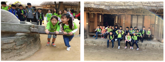 10월 17일(목) 3학년 학생들은 용인 한국민속촌으로 현장체험학습을 다녀왔습니다. 이번 현장체험학습에서는 옛날 조상들이 사용했던 생활 도구 및 지방에 따라 다른 가옥의 모습 살펴보기, 인절미 만들기 과정 중의 하나인 떡메 치기 체험 등 다양한 활동을 하였습니다. 3학년 사회 교과서에서 학습한 내용을 직접 눈으로 보고 체험하며 조상의 슬기와 지혜를 배우고 전통 문화 유산의 가치를 느껴본 유익한 시간이었습니다.