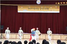서울왕북초등학교(교장 조형식)에서 5학년 학생을 대상으로 11월 12일 ‘2019 신나는 국악여행’ 공연이 열렸습니다. 왕북초등학교는 서울시 603개 초등학교 중에서 선정된 32개 학교 중 하나로, 2019학년도에 새롭게 만들어진 미래관에서 멋진 국악공연을 누릴 수 있는 좋은 기회를 가졌습니다. 한예종 전통예술원 졸업생과 국가무형문화재 제3호 남사당놀이 이수자들이 주축으로 구성된 예인집단 아라한에서 총 6개의 막으로 구성된 살판, 버나놀이, 사자탈춤, 죽방울 놀이와 판 굿 등의 [도깨비와 함께하는 신기방기 놀이판] 공연을 하였습니다.