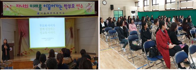 서울대모초등학교(교장 김인숙)에서는 11월 13일(수) 10시에 서울시교육청 학교로 찾아가는 학부모 맞춤형 성교육 강사 김은주님을 모시고 ‘부모가 알아야 할 발달 단계별 자녀 성교육’을 주제로 제7차 학부모연수를 실시하였습니다.