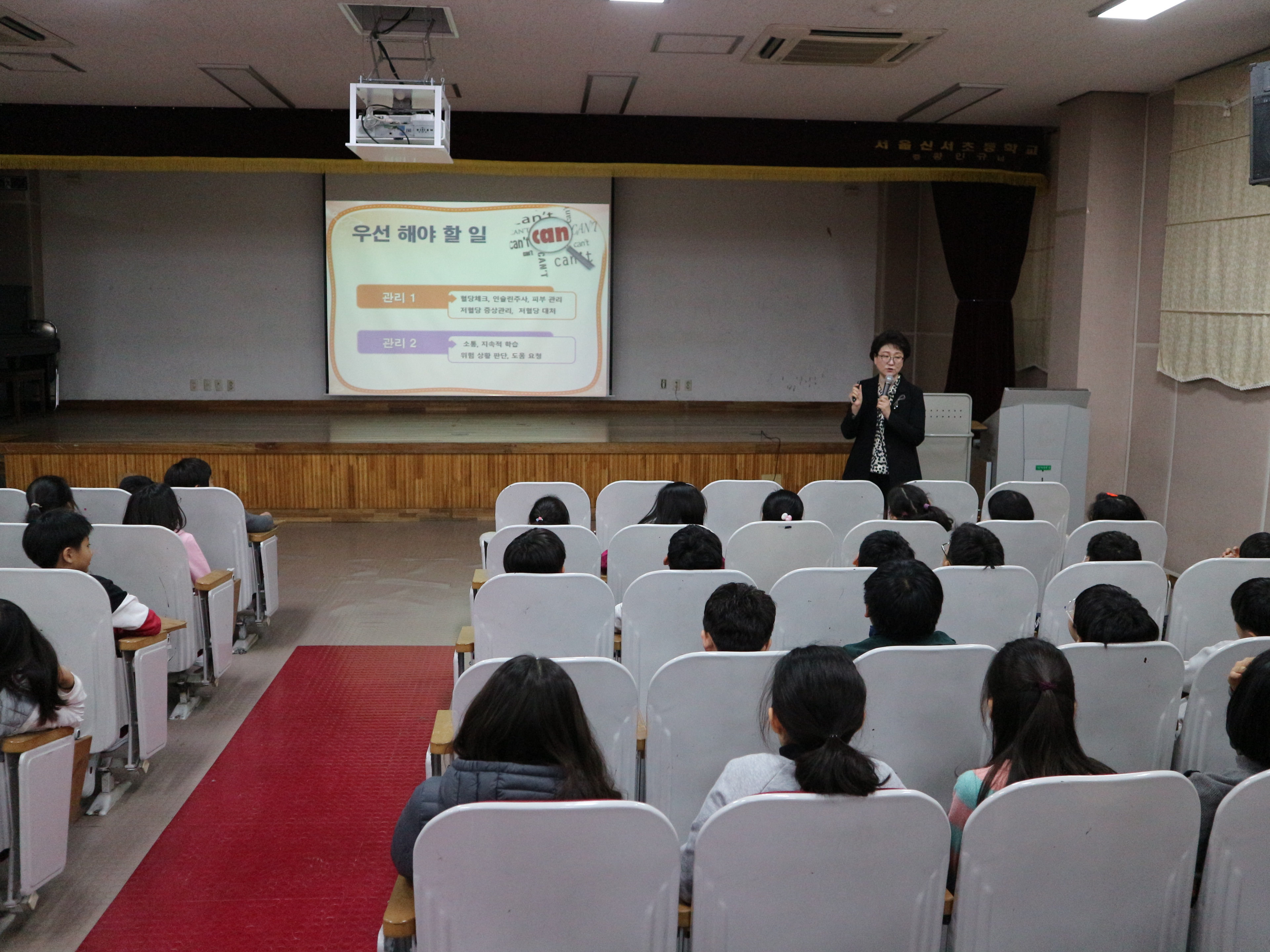 2019년 11월 8일(금) 신서초(교장 이원심) 4학년 어린이들이 소아당뇨에 대한 보다 정확한 정보와 생활 속 실천 사항들에 대해 배우는 기회를 가졌습니다. 이제부터라도 자신의 건강 상태를 알고 개선할 수 있도록 약속하는 시간이었습니다.