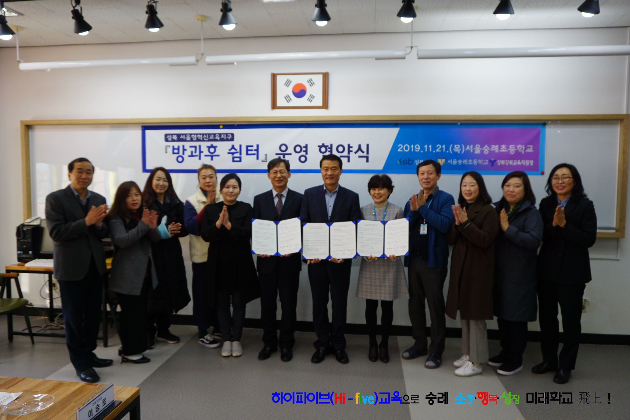 서울숭례초등학교(교장 안은주)는 11월22일 목요일에 성북구, 성북강북교육지원청과 방과 후 쉼터 운영을 위한 협약을 체결하여 방과 후 초등 돌봄 공백 해결을 위한 3개 기관 간 협력관계를 구축했습니다.