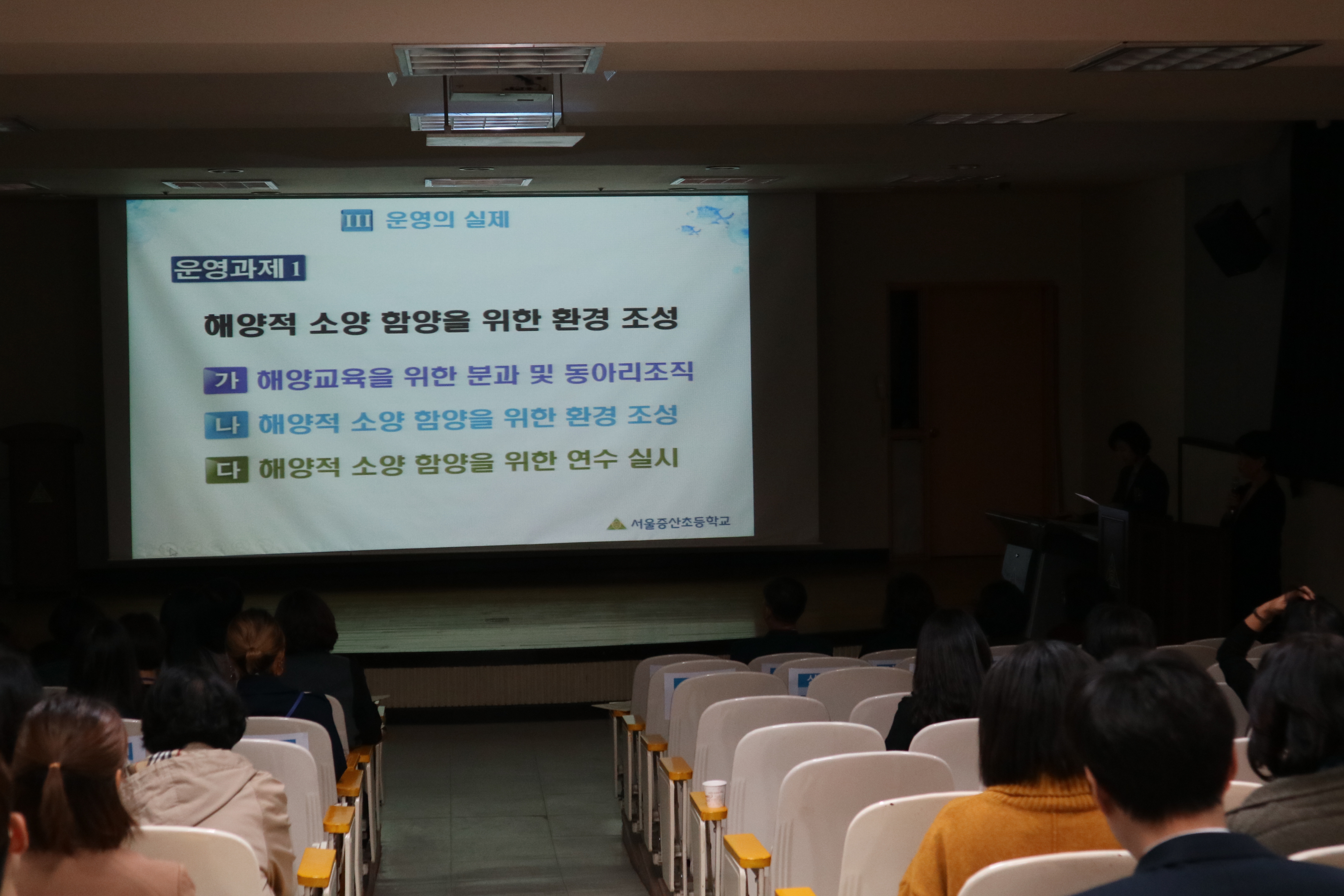 지난 11월 6일(수)에 서울증산초등학교(교장 이의란)에서 서울특별시교육청 지정 해양교육 연구학교 1차년도 보고회가 개최되었습니다.