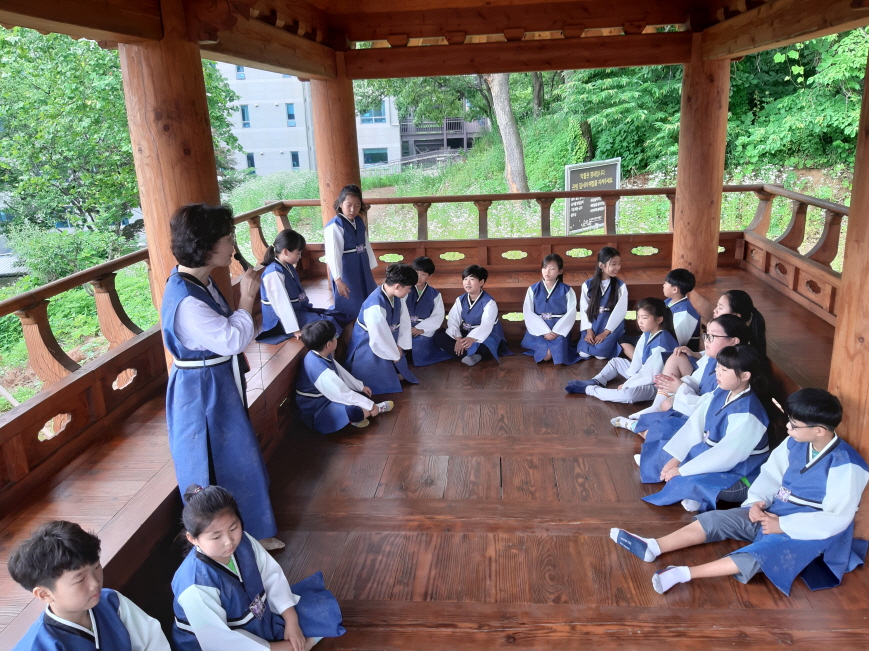 은평역사한옥박물관의 너나들이센터 한복체험실에서 한복을 입고 절하는 방법 및 예절에 대해 배우며 몸과 마음가짐을 바르게 하는 자세를 익힐 수 있었습니다. 그리고 정자에 앉아 북한산의 풍경을 바라보며 부채에 시화를 그려 읊어보는 시간을 통해 가을의 정취를 만끽할 수 있었습니다. 또한 전통놀이를 즐기며 친구끼리의 화합도 다지는 알찬 시간이었습니다.