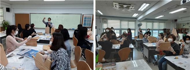 서울오정초등학교(교장, 김기홍)는 서울형혁신학교 운영과 학년별 특색있는 교육활동을 학부모들이 직접 체험해 보는 ‘오정혁신교육 맛보기’ 학부모 연수를 지속적으로 실시하고 있습니다. 지난 1차 학부모연수의 설문결과를 반영하여 재개설을 희망한 목공연수를 11월 22일(금)에 다시 실시하였습니다. 목공예 작품 만들기는 5학년 특색사업으로 진행되는 교육활동으로 나무의 질감을 느끼며 실제 생활에 필요한 제품을 직접 제작해보는 활동입니다. 학부모들이 학교교육활동에 관심을 가지고 참여하며 체험함으로써 학생들이 학교생활에서 느끼는 즐거움을 함께 공감할 수 있는 계기가 되었습니다.