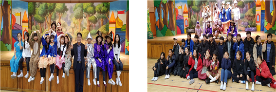 11.19(화)~19(수)에는 백송관에서 교내 예술동아리 어린이들의 연극과 뮤지컬 공연을 관람하였습니다. 연극 동아리에서는 <소가 된 게으름뱅이>를 공연했습니다. <소가 된 게으름뱅이>는 우리나라 전통놀이인 비석치기와 전통민요 “쾌지나 칭칭 나네”를 배우고 체험할 수 있는 융복합형 어린이 교육 공연입니다.
