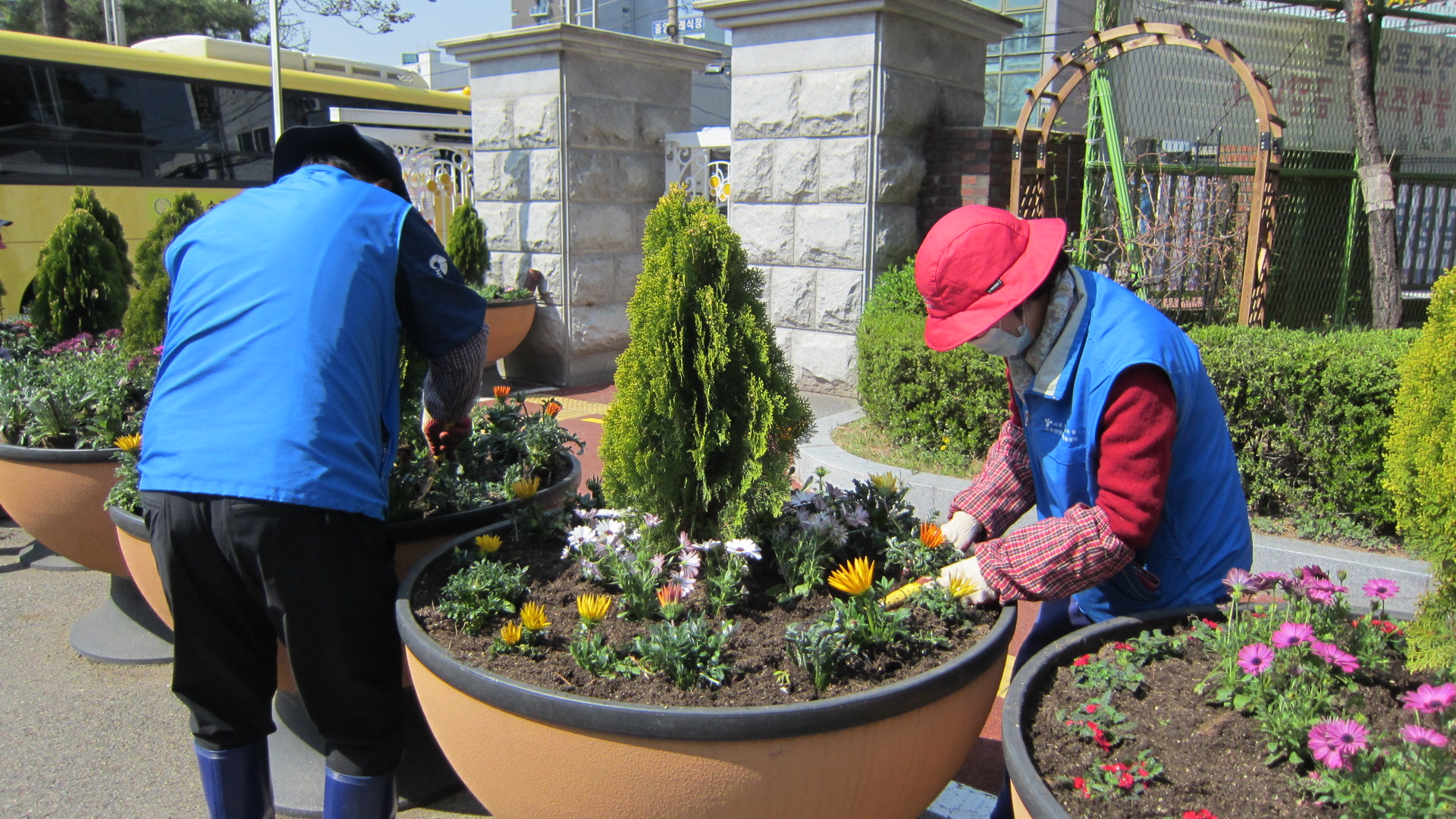 송정초등학교에서는 교문 앞 화분에 그린에듀봉사단과 주무관님의 도움으로 예쁜 꽃을 심었습니다. 따뜻한 봄바람을 타고 퍼지는 꽃향기가 송정초등학교에 가득하기를 기원합니다.