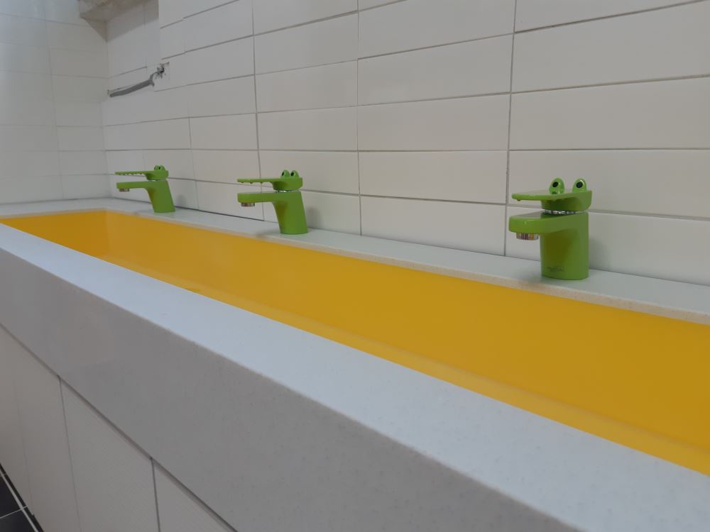 서울신구초등학교(교장 김영주)의 복도 세면대가 새롭게 바뀌었습니다. 귀여운 악어 모양의 수도꼭지와 밝고 화사해진 세면대에서 신구 어린이들은 매일매일 깨끗하게 손을 씻으며 청결하고 안전한 학교생활을 하고 있습니다. 특히나 추운 겨울에도 따뜻한 온수가 나와 사시사철 즐겁게 세면대를 사용할 수 있게 되었답니다.