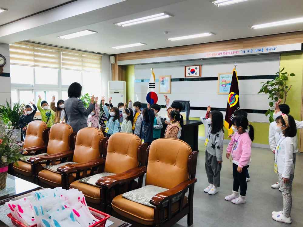특히 교장실에서 1학년 학생들을 반겨주신 김영주 교장선생님께서는 1학년 학생들에게 우리 학교의 자랑거리와 역사에 대해 설명해주시고 1학년 학생들의 멋진 학교생활을 응원하는 선물을 전해주셨습니다. 이번 학교 탐방을 통해 학교가 처음인 1학년 학생들은 학교를 둘러보며 학교에 적응하는 유익한 시간을 가졌습니다.
