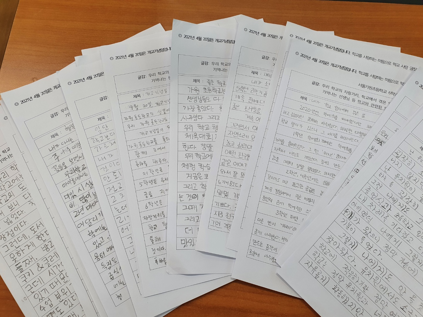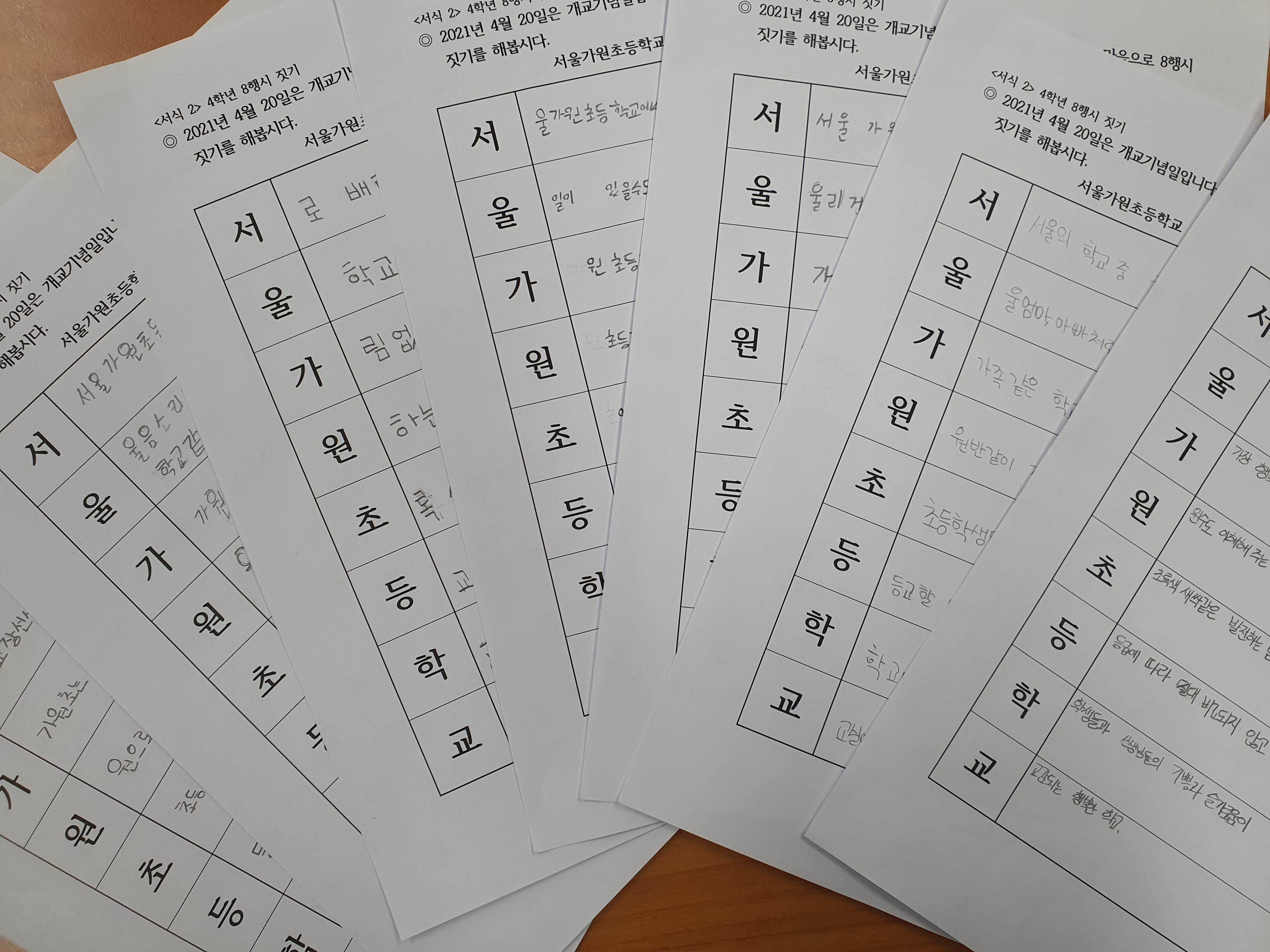 서울가원초등학교(교장 김남수)는 4월 20일(화) 개교기념일을 맞아 4월 12일~16일에 1~6학년 학생들을 대상으로 학교사랑주간 학예행사를 실시하였습니다.